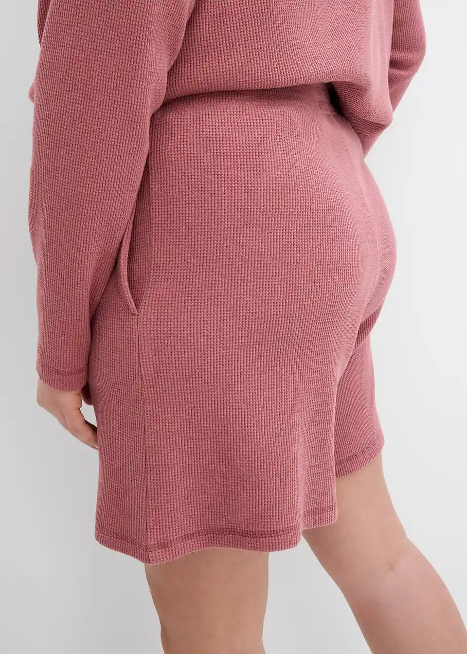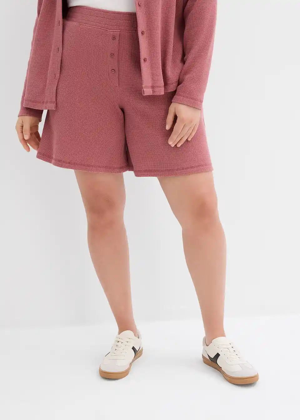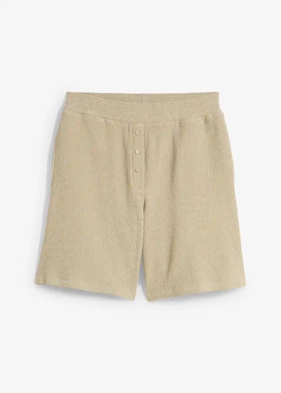 Shorts od strukturiranog waffle-jerseya. Navlačivi stil s elastičnim pojasom i ukrasnim gumbima.