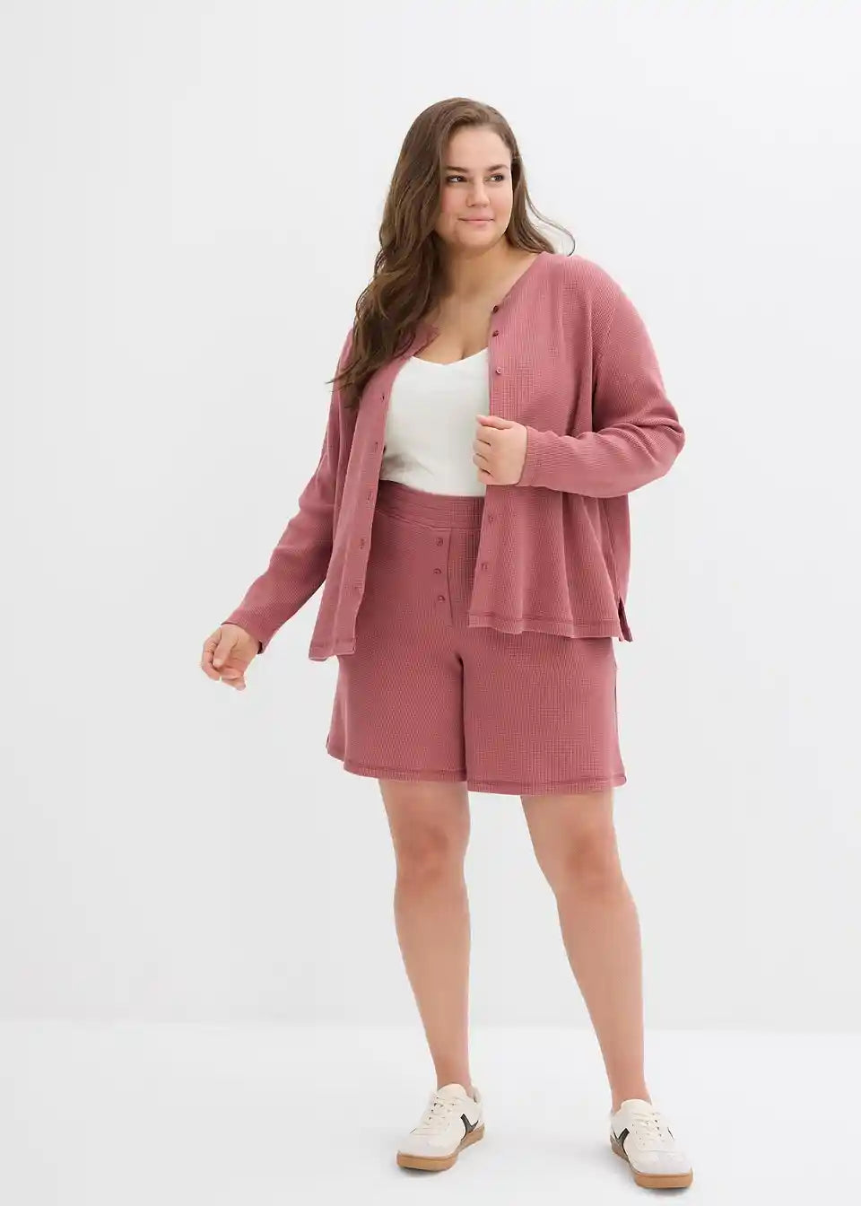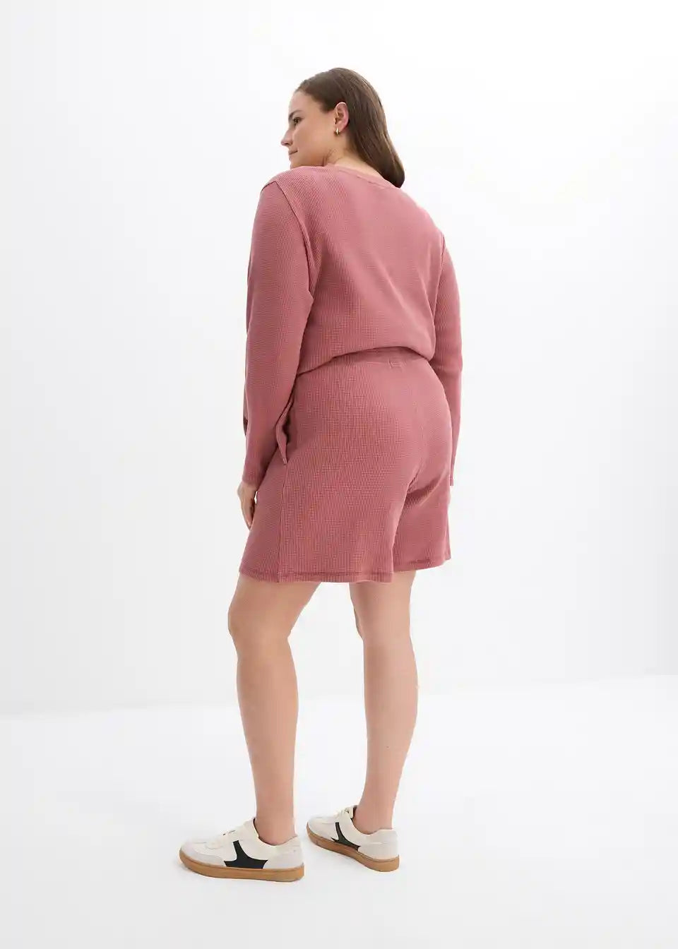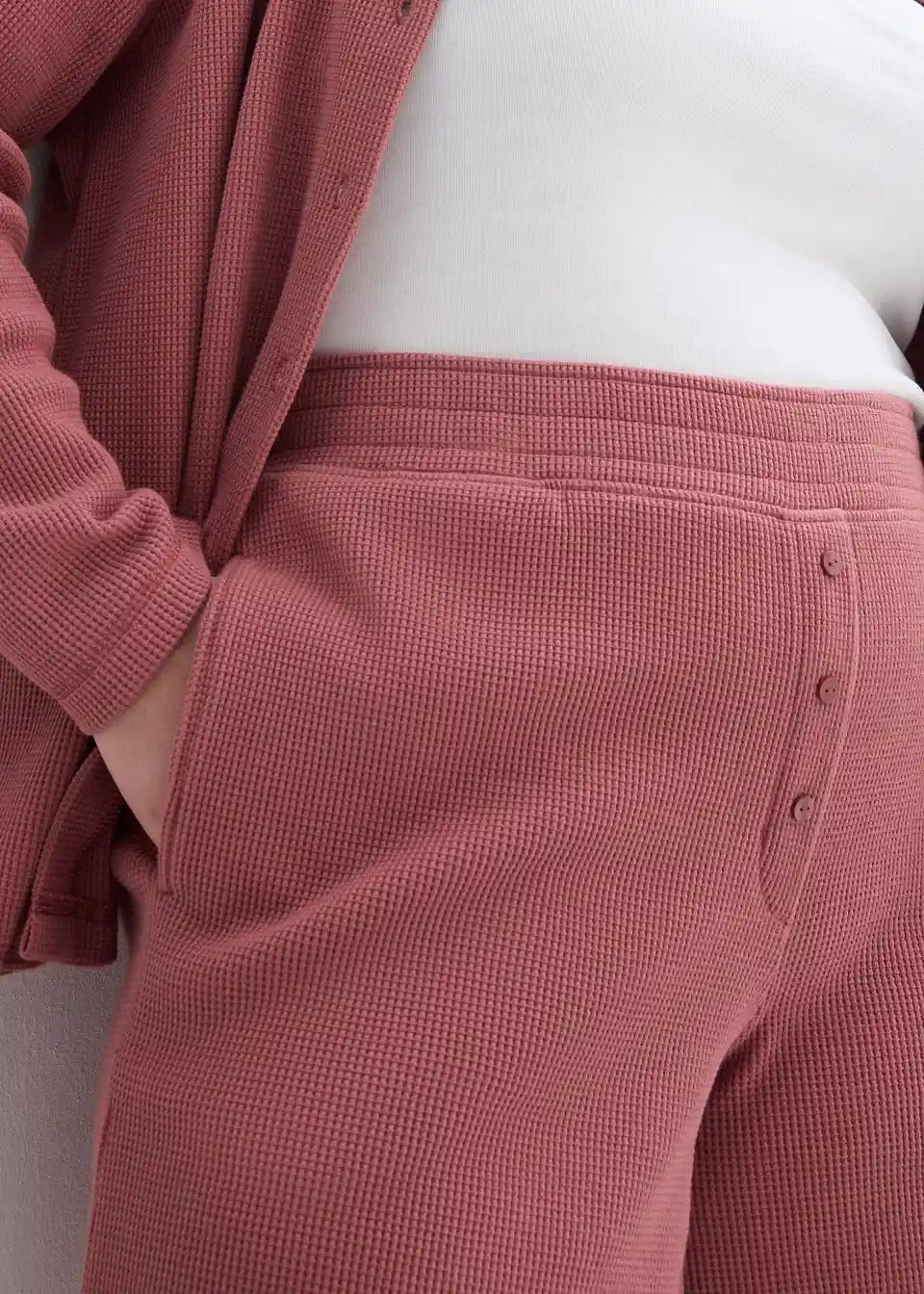 Shorts od strukturiranog waffle-jerseya. Navlačivi stil s elastičnim pojasom i ukrasnim gumbima.
