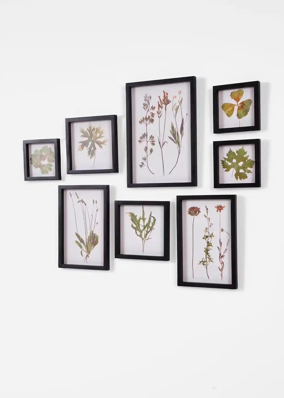 Ovaj 8-dijelni set slika donosi ljepotu prirode na vaš zid. Filigranski biljni motivi u jednostavnim okvirima elegantan su dodatak svakom domu. Bilo u dnevnom boravku, spavaćoj sobi ili hodniku – slike se mogu individualno rasporediti i pružaju osobni dodir prostoru. Slike su namijenjene isključivo za vješanje na zid.