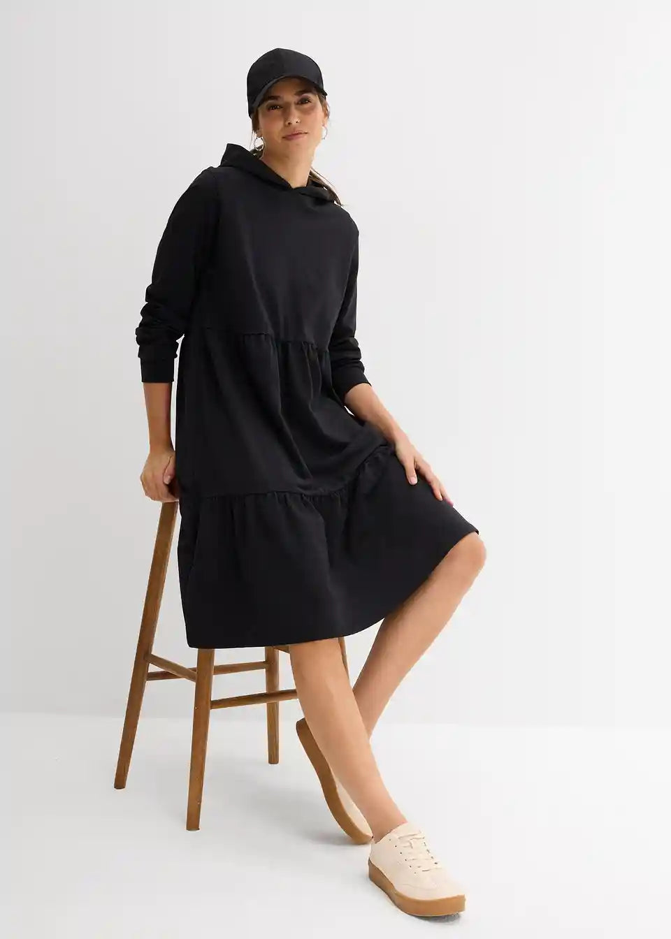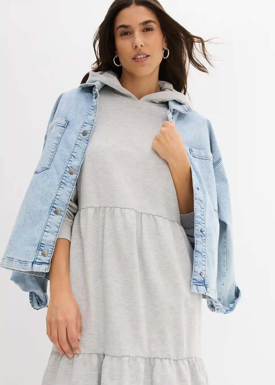 Haljina do koljena, udobnog kroja s kapuljačom