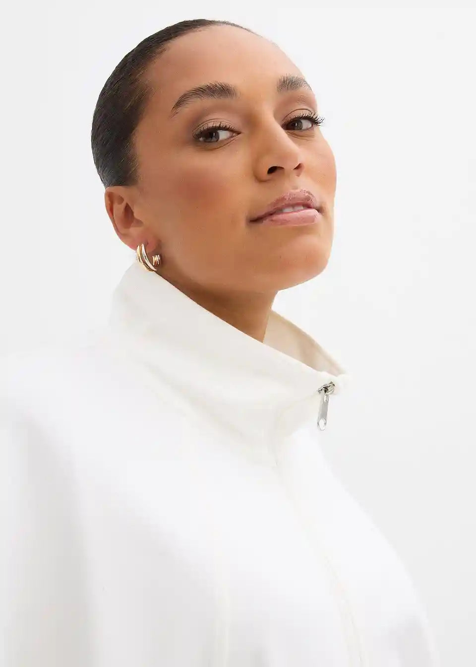 Sweat jakna s patentnim zatvaračem, visokim ovratnikom i kosim ušivenim džepovima sprijeda