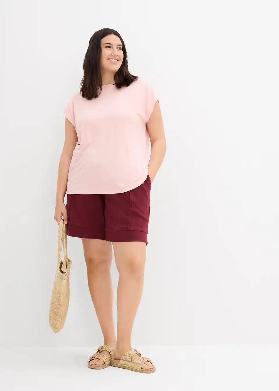 Sweat-Shorts s visokim, elastičnim pojasom. Široki kroj.