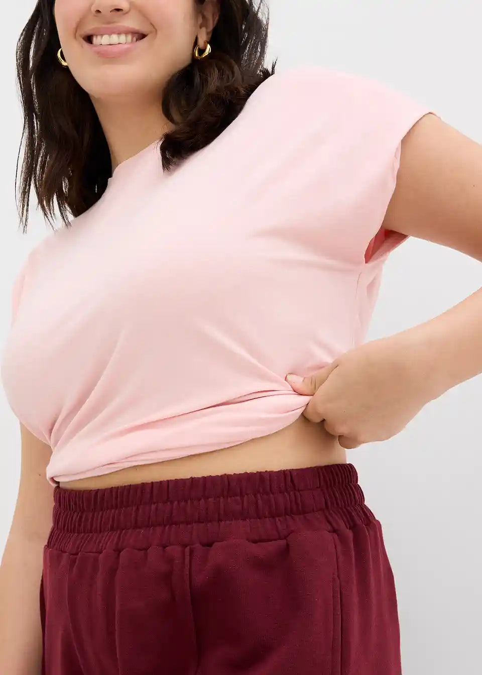 Značajka kroja:širok pojas za oblikovanje tijela, u dužini preko bokova, pruži komfor, olakšava kretanje zbog rastezljivog umetka, pruži udobnost zbog stretcha, sakrije puniji trbuh, stražnjicu, šire bokove i bedra