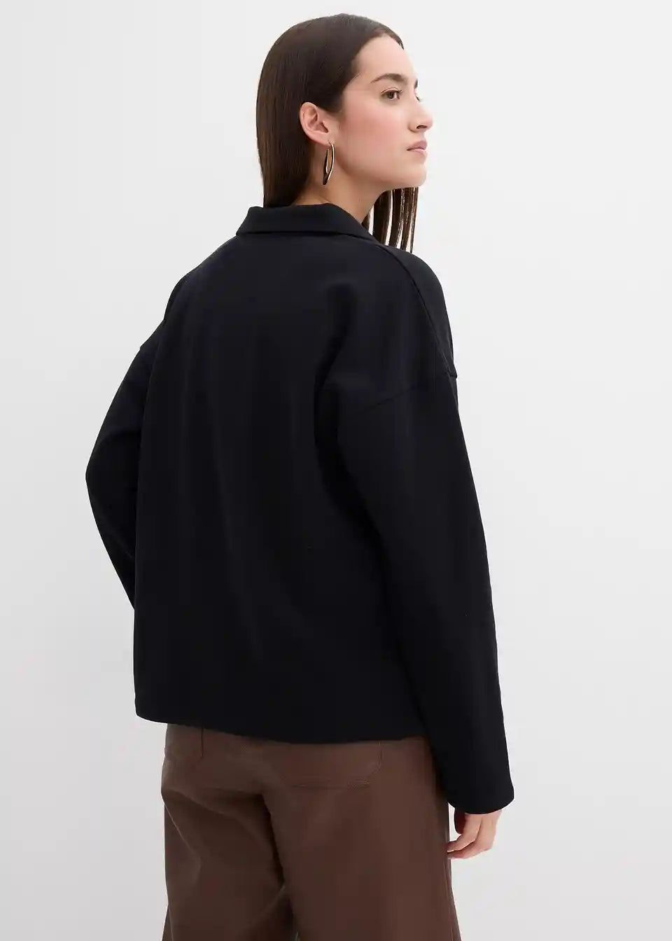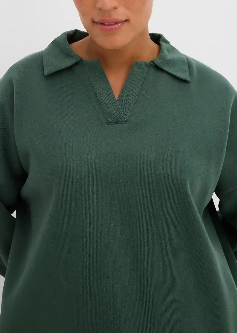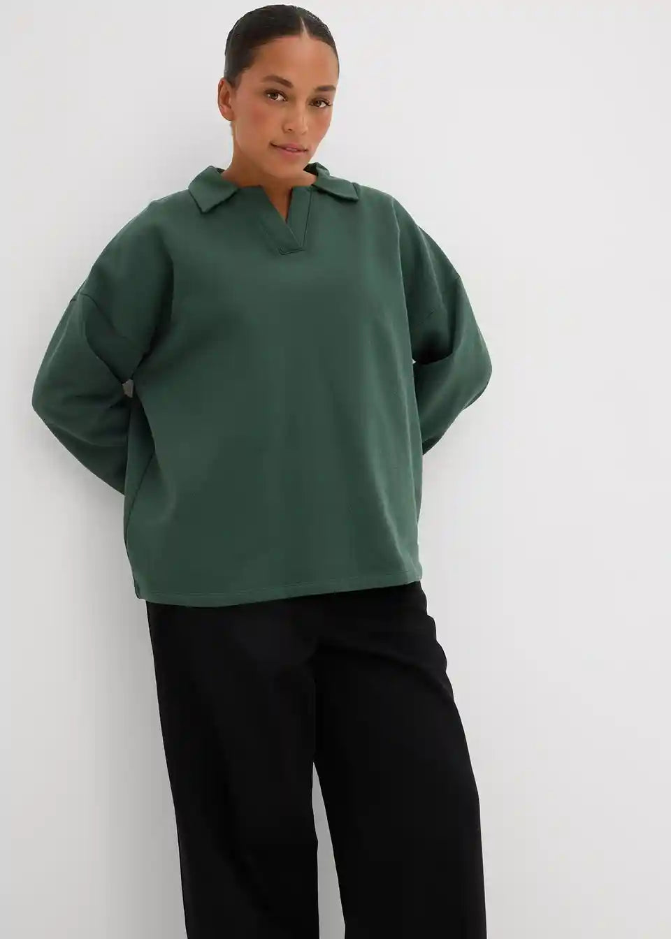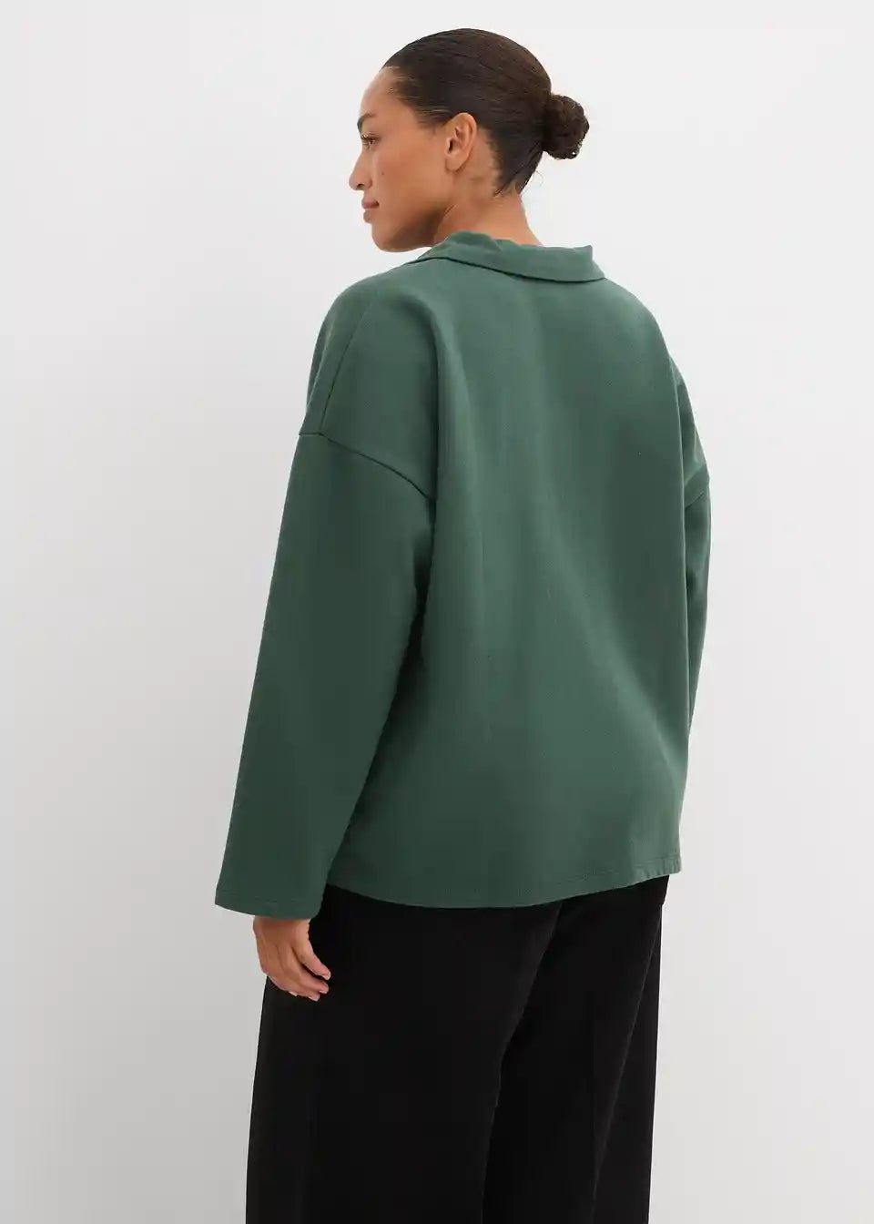 Sweatshirt s pletenim polo ovratnikom i V-izrezom, s dugim rukavima, od organskog pamuka