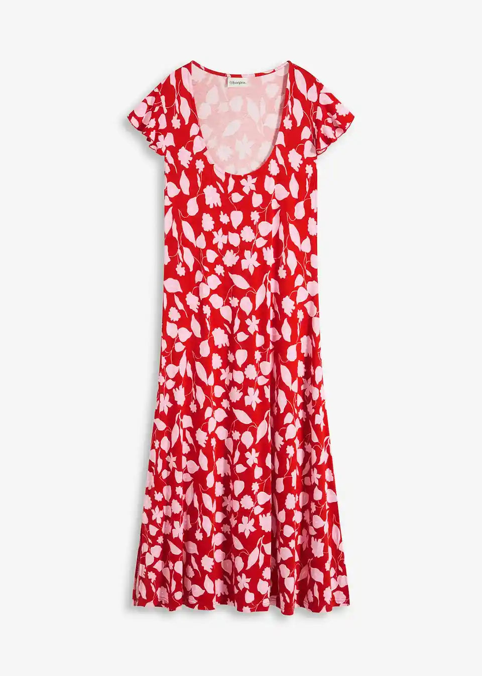 moderna tiskana jersey haljina midi dužine od meke mješavine viskoze s malim krilastim rukavima