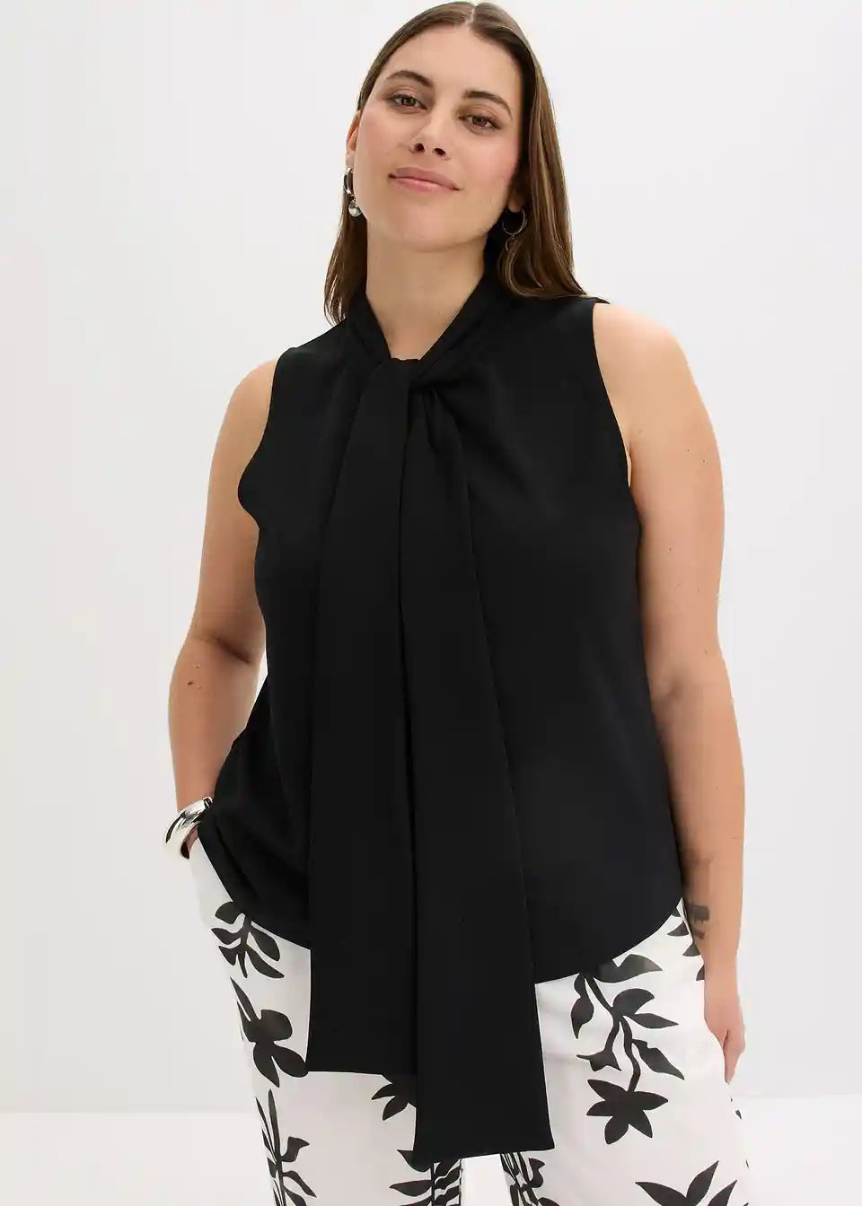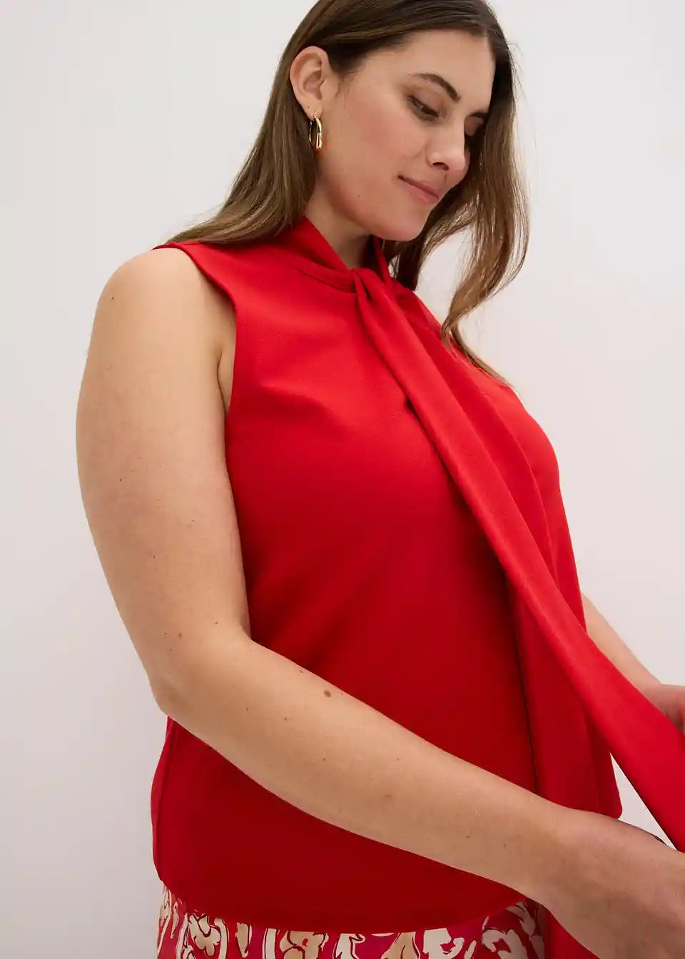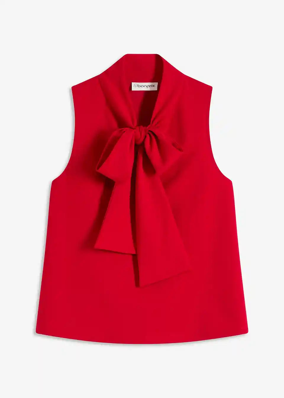 ženstven top s modernom mašnom na ovratniku izrađen od čvrstog, lagano strukturiranog jerseya