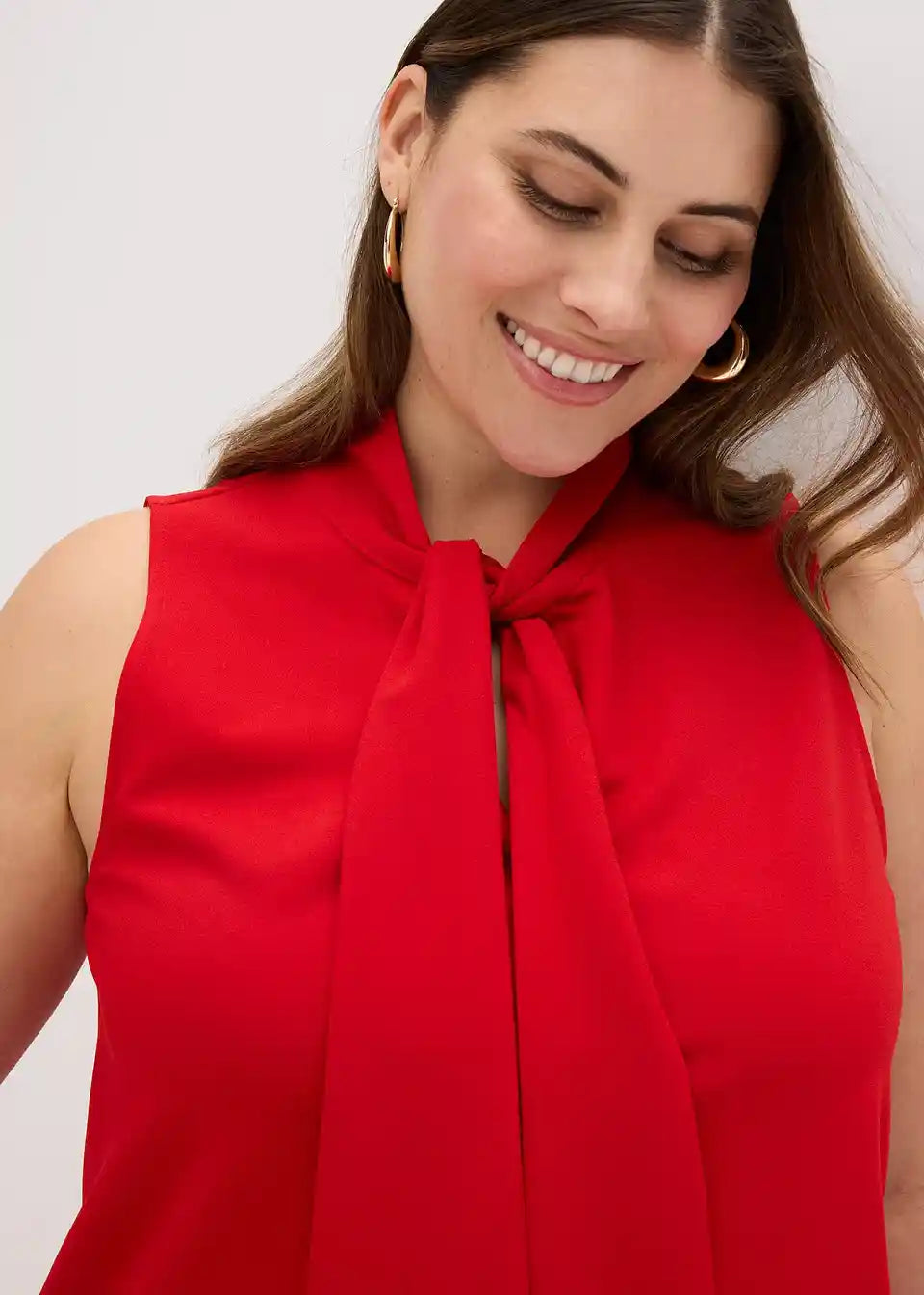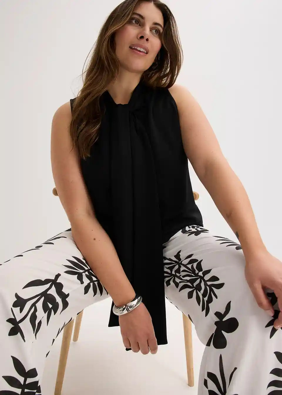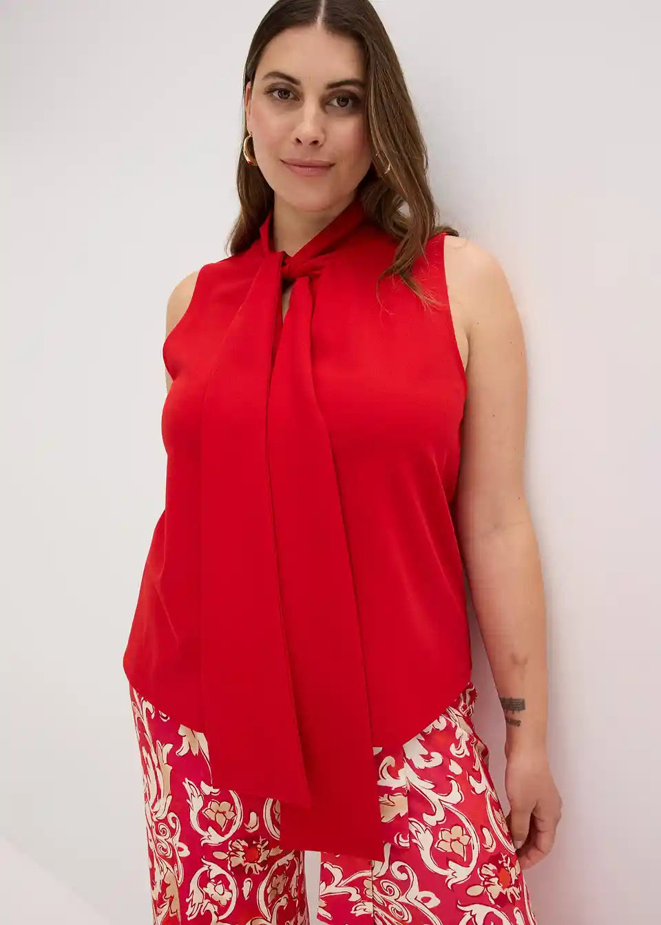 ženstven top s modernom mašnom na ovratniku izrađen od čvrstog, lagano strukturiranog jerseya