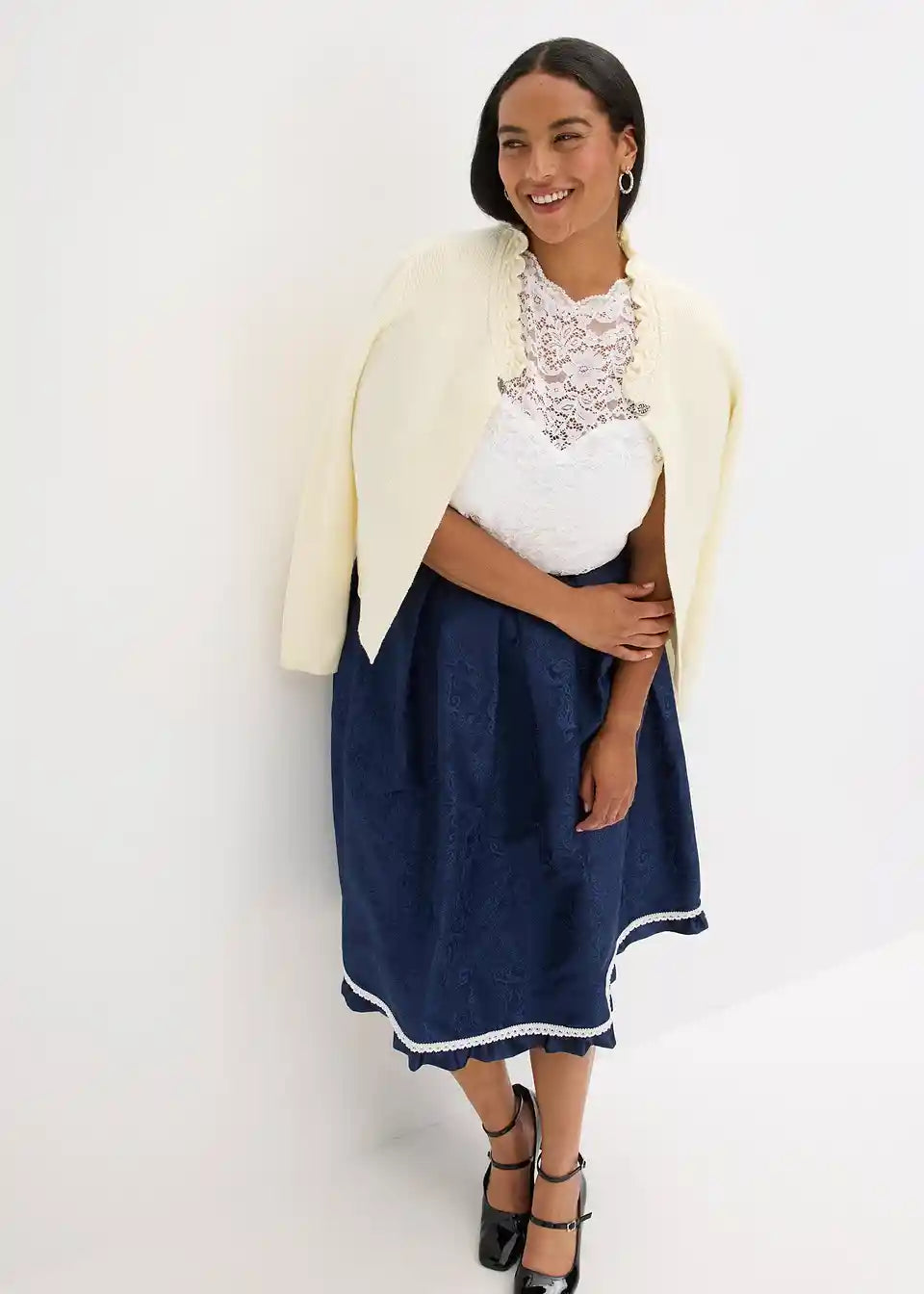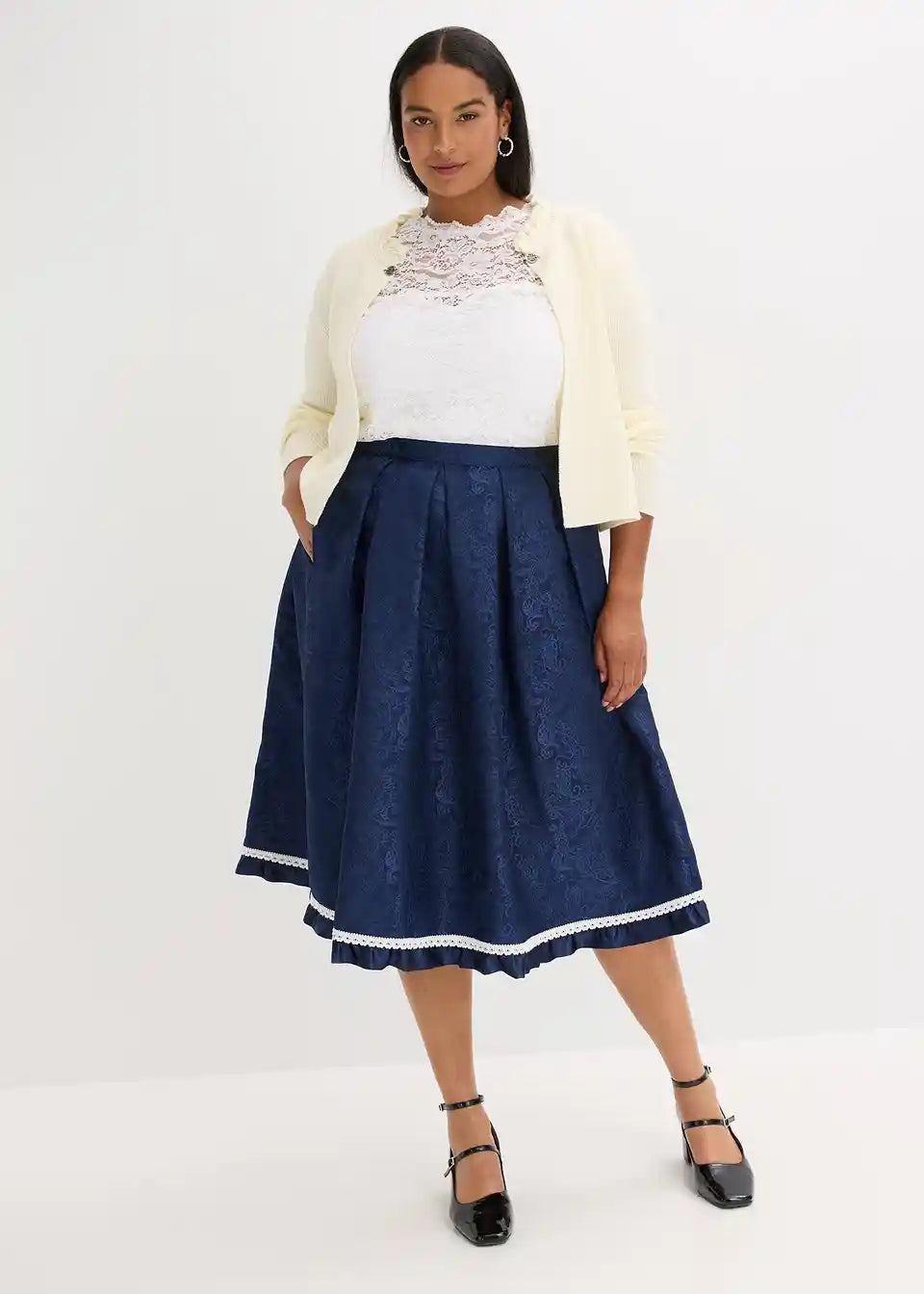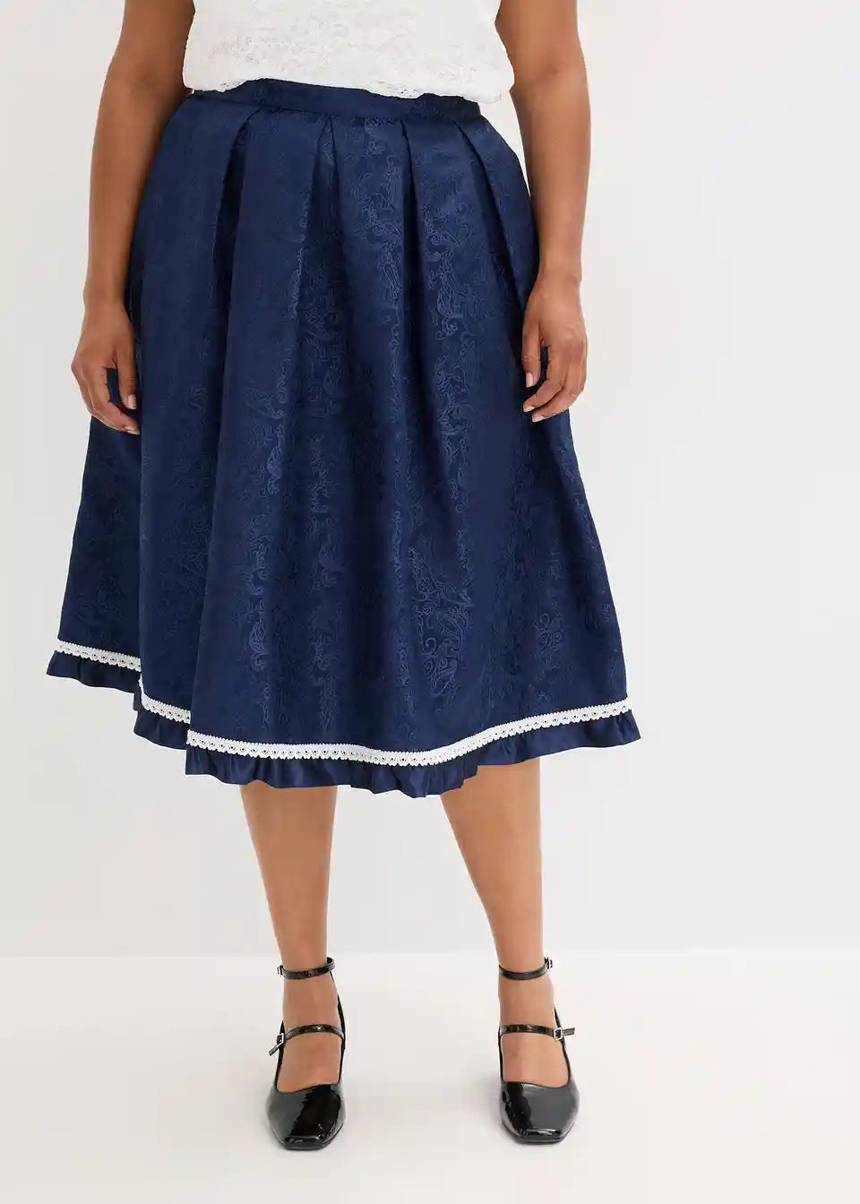 Moderna i ženstvena: Tradicionalna suknja midi dužine od sjajnog žakarda s čipkanom bordurom