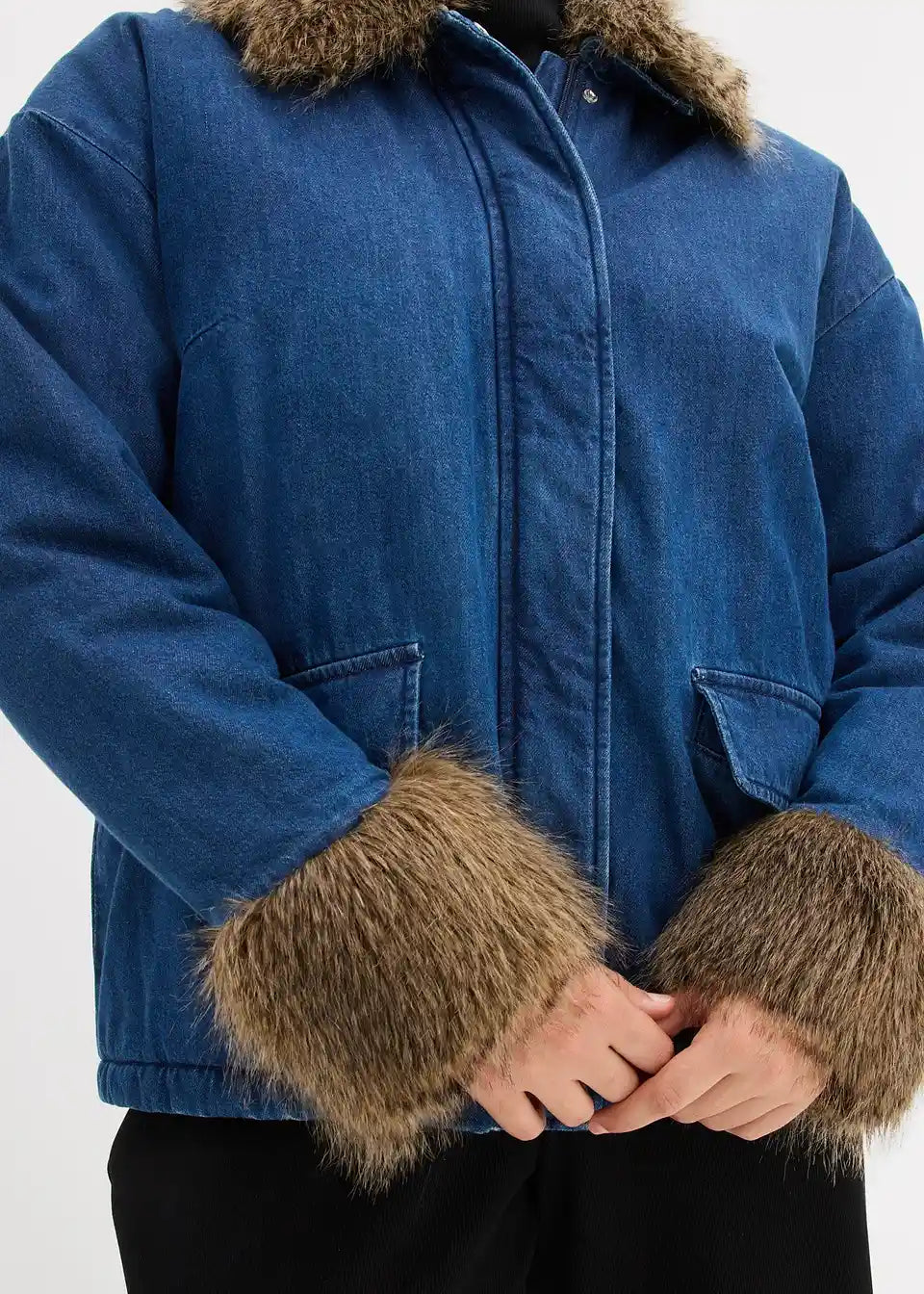 Materijal:gornji materijal: 66% pamuk, 34% lyocell (s certifikatom), podstava i vatirana podstava: 100% poliester, imitacija krzna: 47% modakril, 39% poliakril, 14% poliester