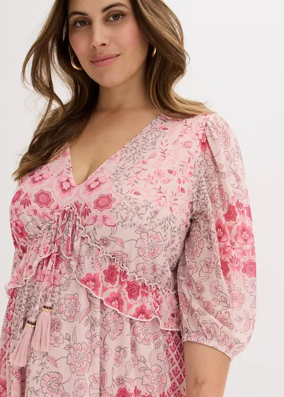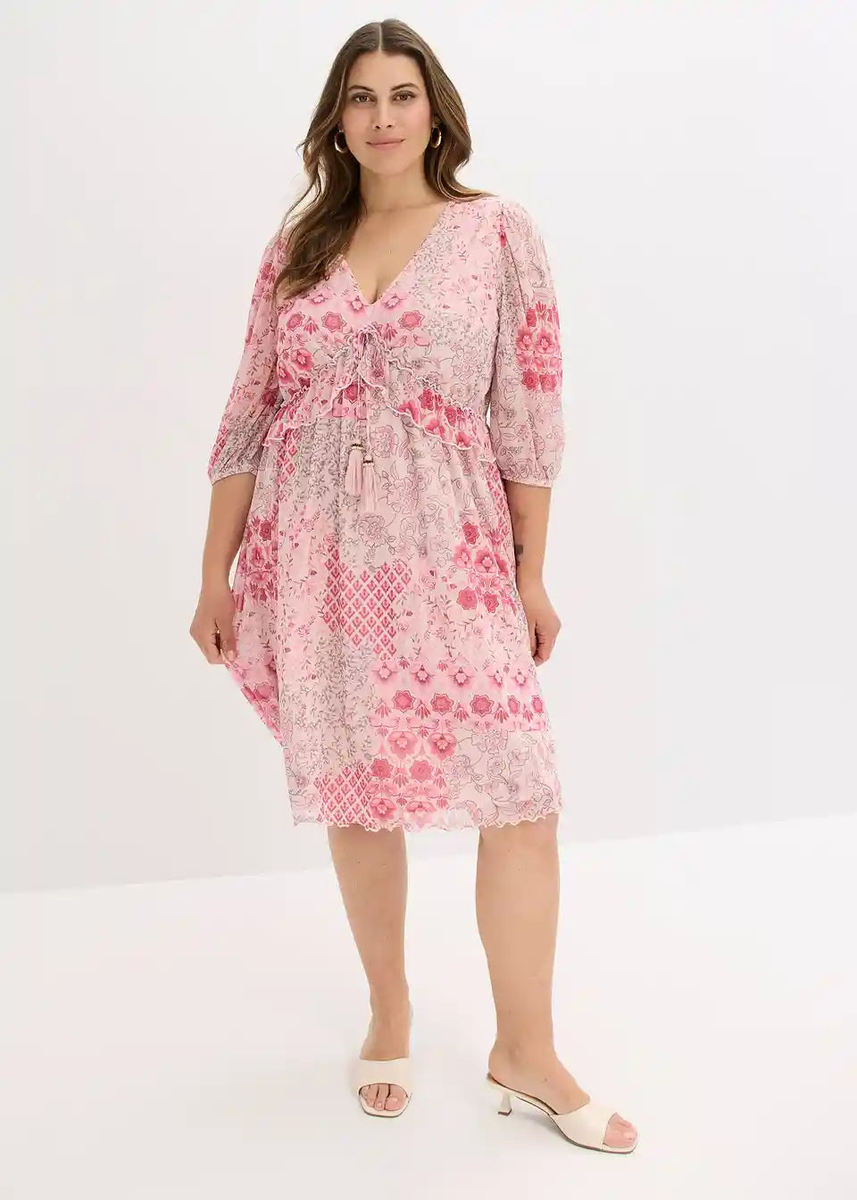 Haljina u stilu tunike od mrežastog materijala s uzorkom