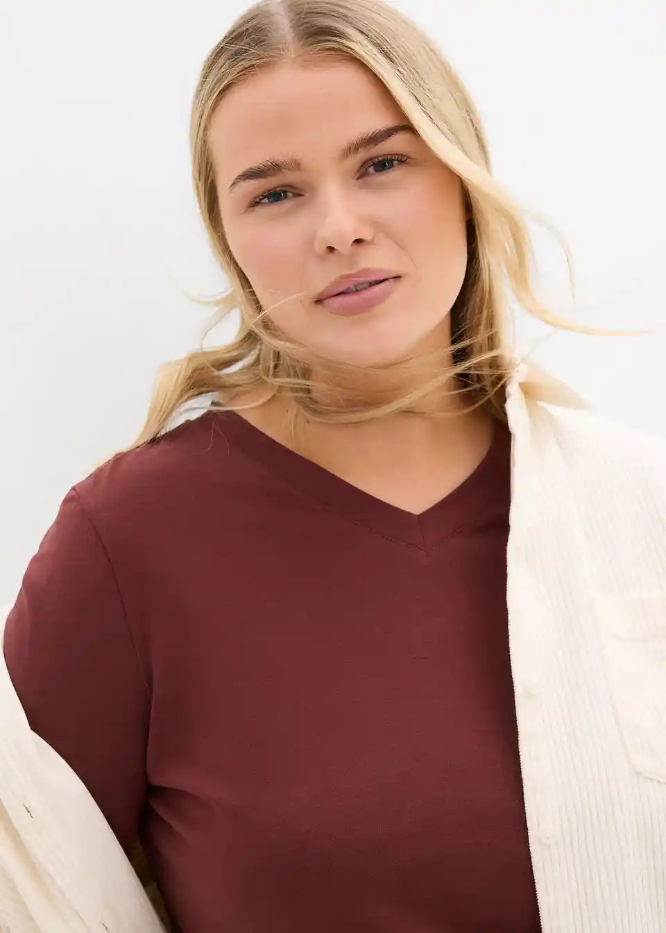 Udobna majica s dugim rukavima i V-izrezom