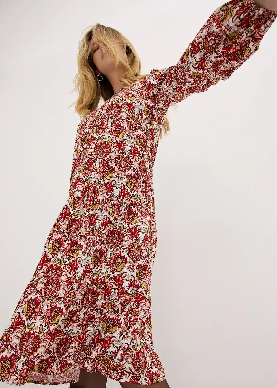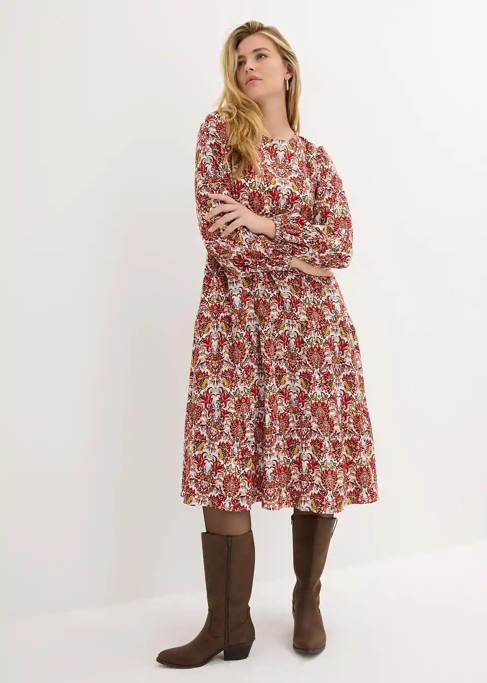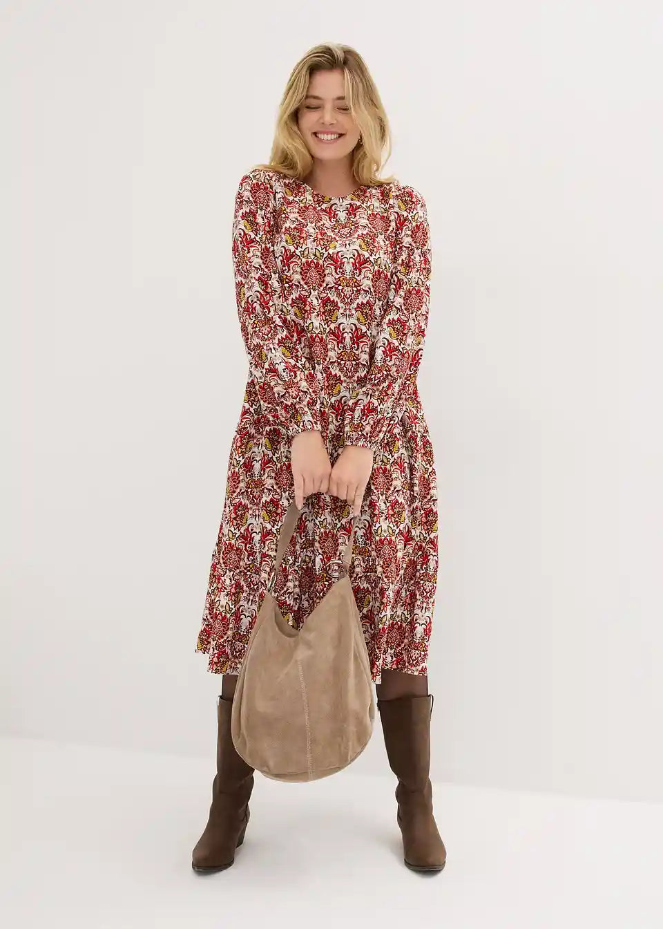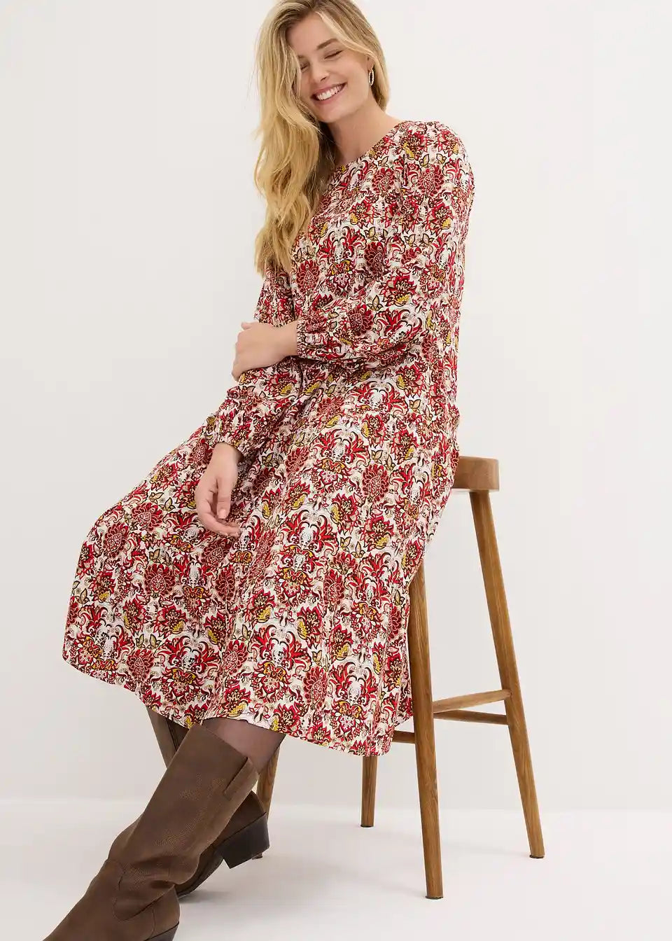 Lijepa midi haljina izrađena od viskoze pruža tijelu ugodan osjećaj nošenja