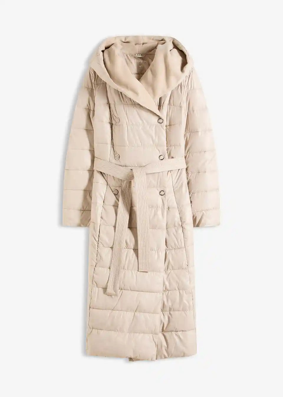 Vodootporni prošiveni kaput s dodatkom od imitacije vune i remenom za vezanje