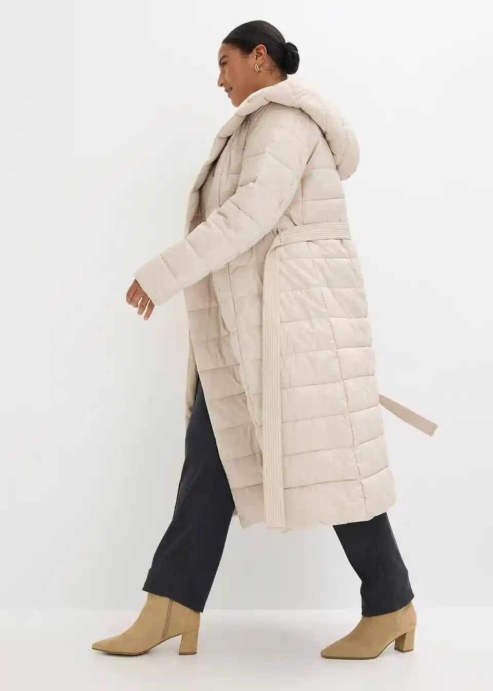 lijep prošiveni kaput s umjelom vunom i pojasom za vezanje (2-dijelni)