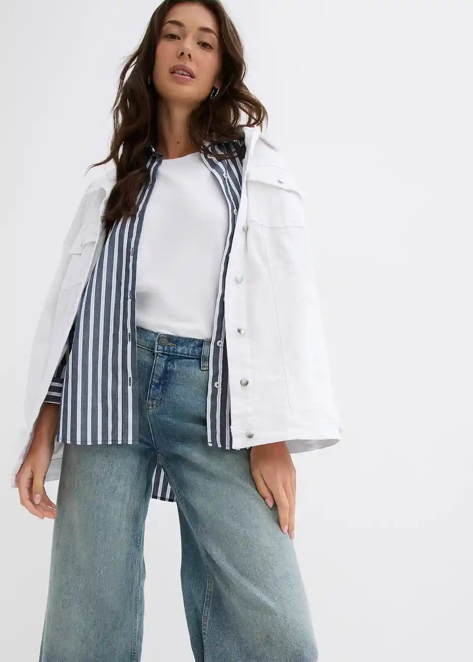 Široke 5-džepne traperice od čvrstog pamučnog trapera, koji je na početku malo krut, ali nošenjem postaje mekši i ležerniji. Srednje visoki struk s patentnim zatvaračem i gumbom. Duža nogavica, tako da na stopalu nastaje lagani stacking efekt. Ove traperice zahvaljujući opranom finishu imaju moderan used izgled. Blago ispuštanje boje tijekom nošenja i pranja je karakteristično za ove traperice.
