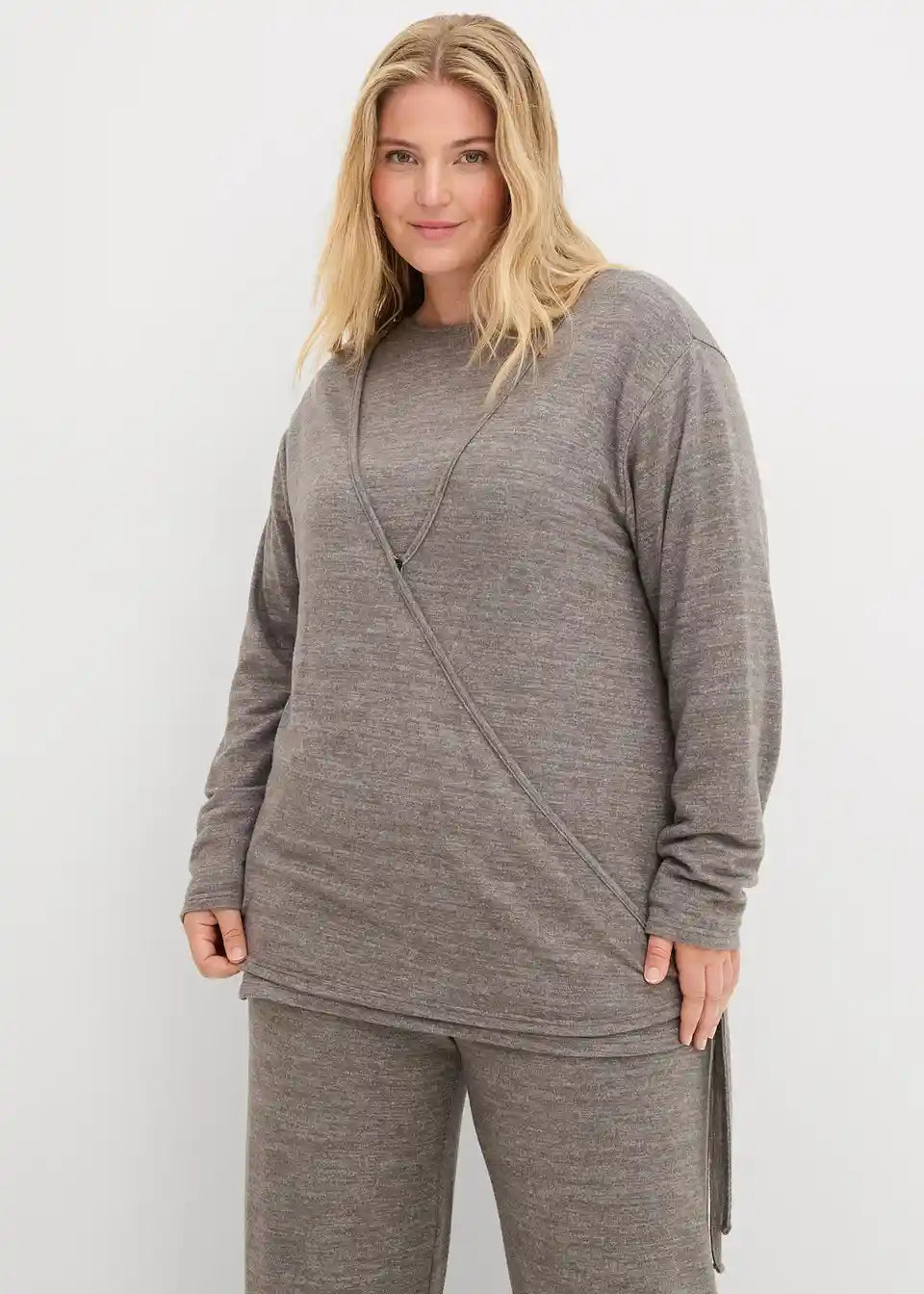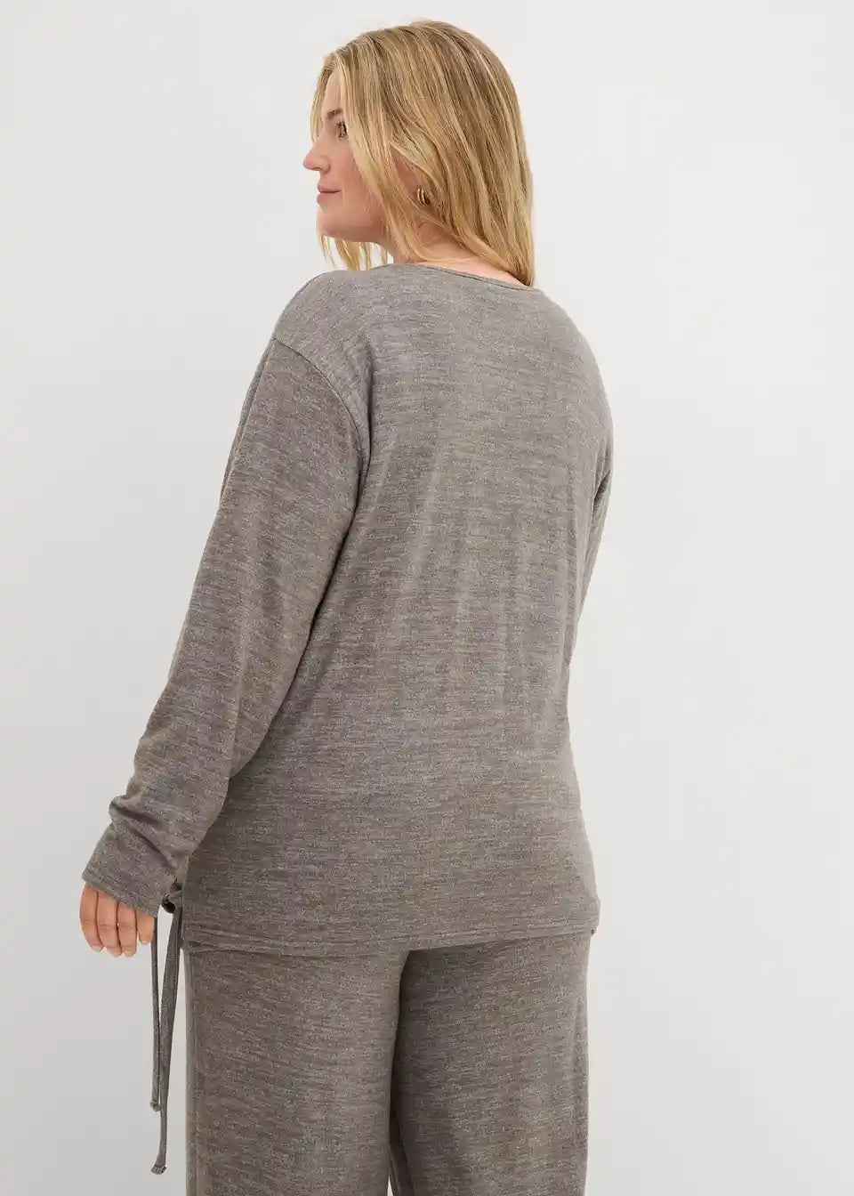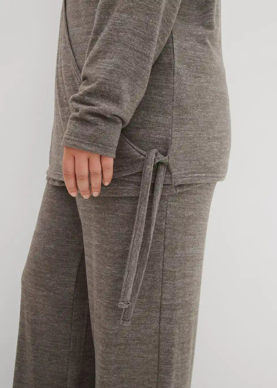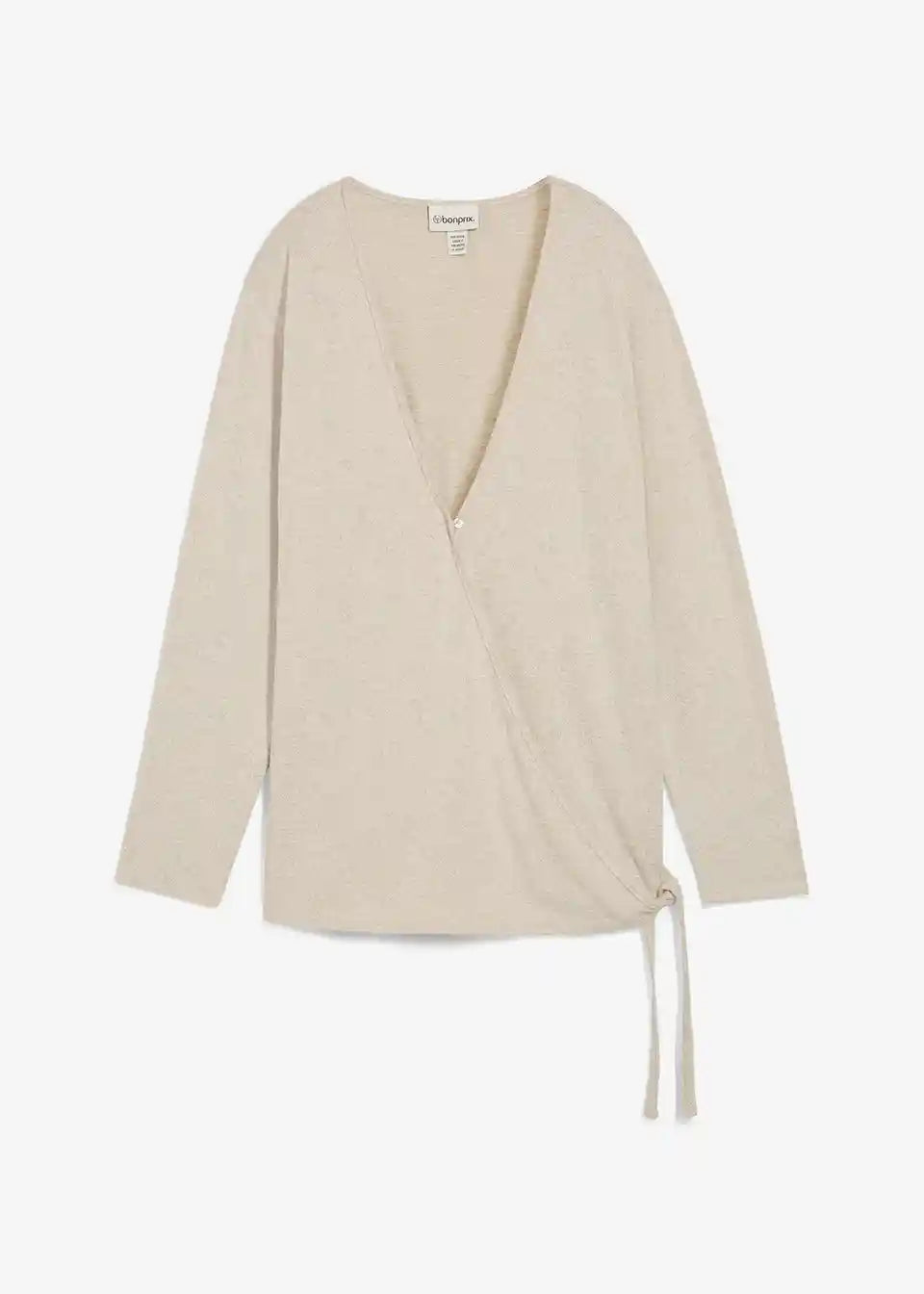 Dugih rukava wrap kardigan s vezanjem na rubu i dodatnim detaljem na gumb.