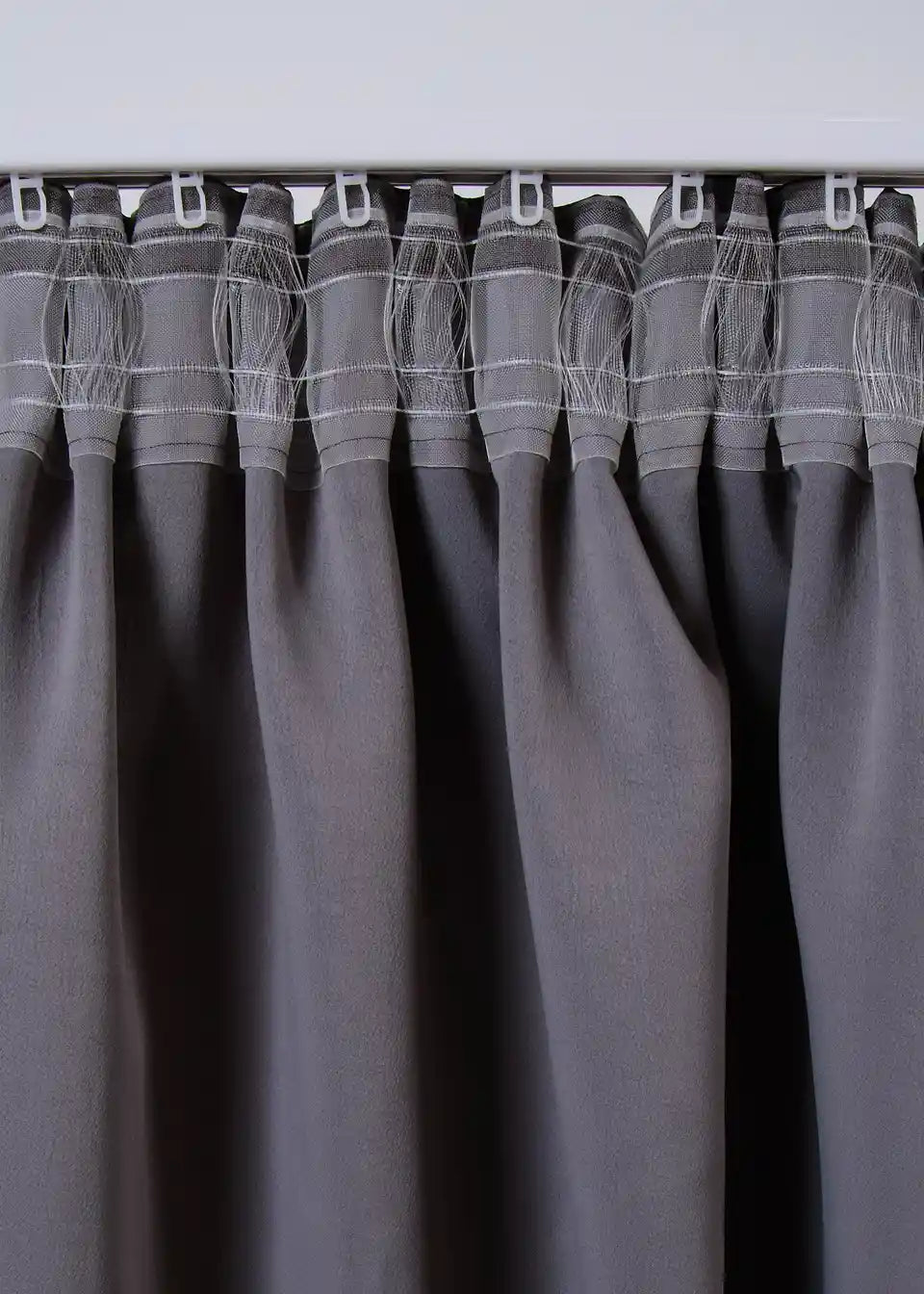 Stvorite mirnu i opuštajuću atmosferu u svom domu s našom zatamnjujućom zavjesom s laganom strukturom. Fina struktura teške tkanine pruža ugodan osjećaj na dodir i elegantan izgled, dok je stražnja strana u modernoj srednje sivoj boji, koja se skladno uklapa u svaki interijer. Bilo da se radi o spavaćoj sobi, dnevnom boravku ili radnoj sobi – ova zavjesa stvara ugodnu atmosferu u kojoj ćete se osjećati dobro. Osim toga, teška zavjesa može odbijati toplinu i hladnoću.