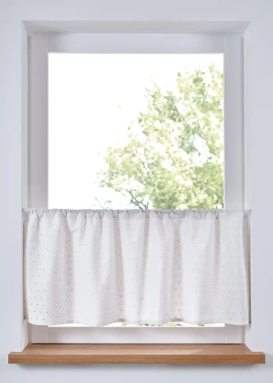 Pretvorite svoju kuhinju u prostor ispunjen šarmom i privatnošću s našom neprozirnom kuhinjskom zavjesom od organskog pamuka. Cvjetni vez s rupicama daje ovoj kuhinjskoj zavjesi profinjenu teksturu i dašak romantike, koji uljepšava svaku prostoriju. Sam pamuk je neproziran, ali kroz vez s rupicama prolazi dnevna svjetlost.