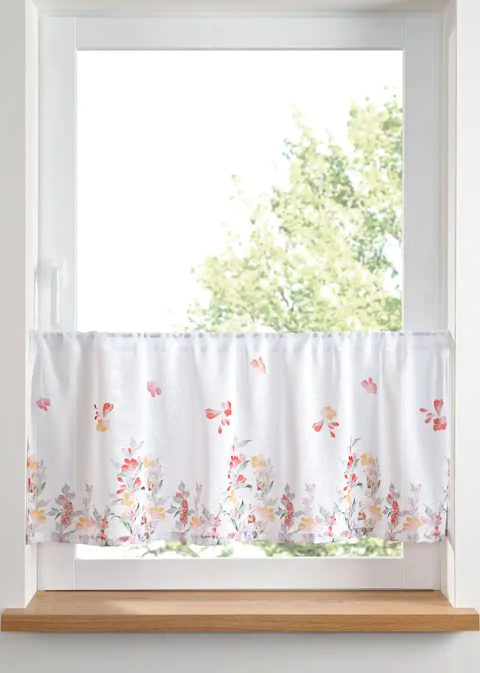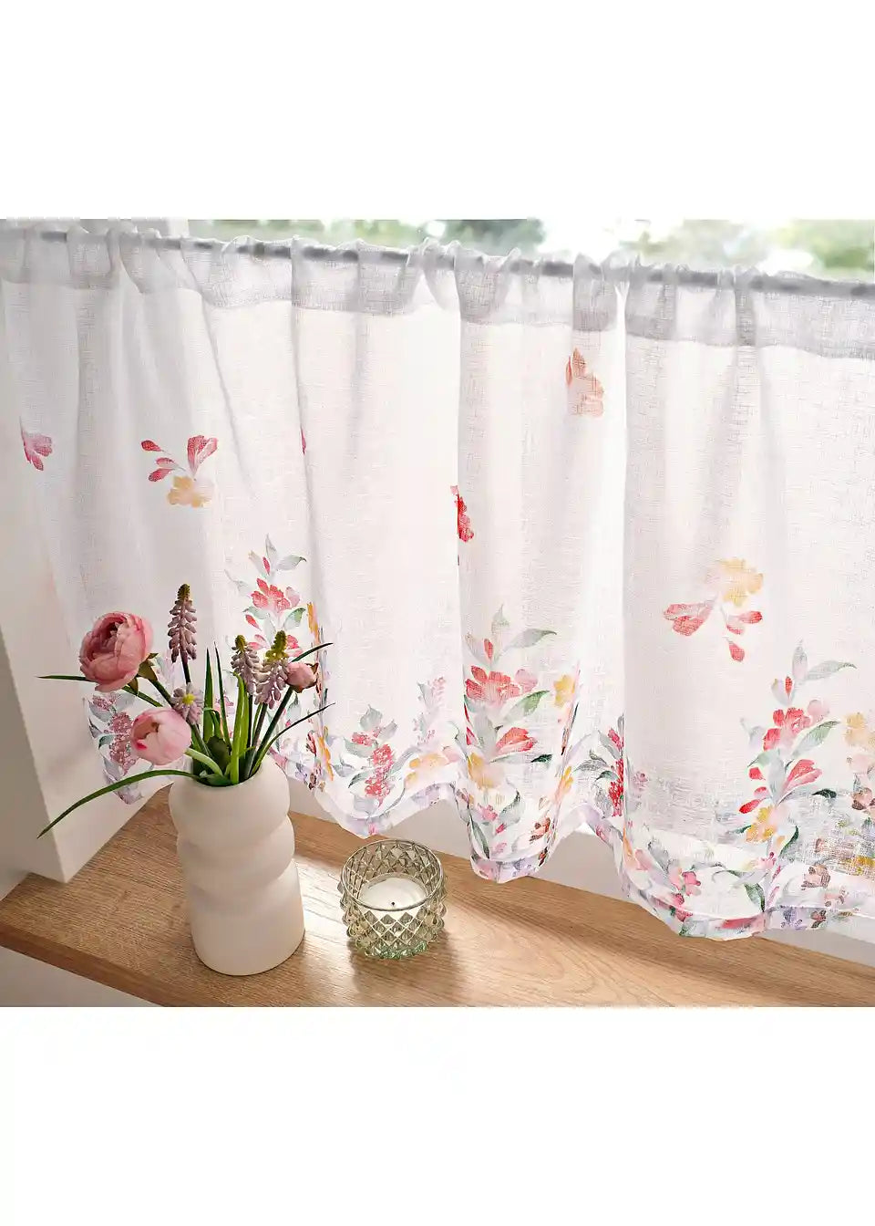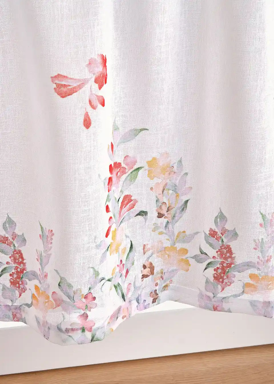 Otkrijte našu poluprozirnu kuhinjsku zavjesu s prekrasnim cvjetnim uzorkom u printu. Nježno propušta dnevno svjetlo u vašu kuhinju, dok istovremeno pruža potrebnu zaštitu od pogleda. Očaravajući cvjetni print donosi svježinu i boje u vaš prostor, stvarajući ugodnu i privlačnu atmosferu.