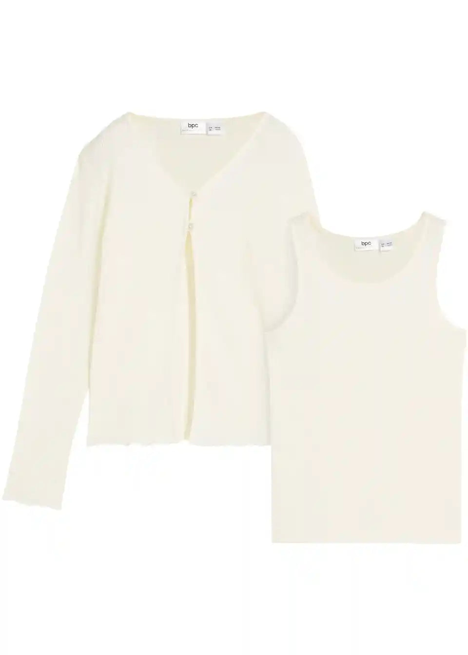 Rebrasta jakna od trikoa i majica bez rukava od organskog pamuka za djevojčice