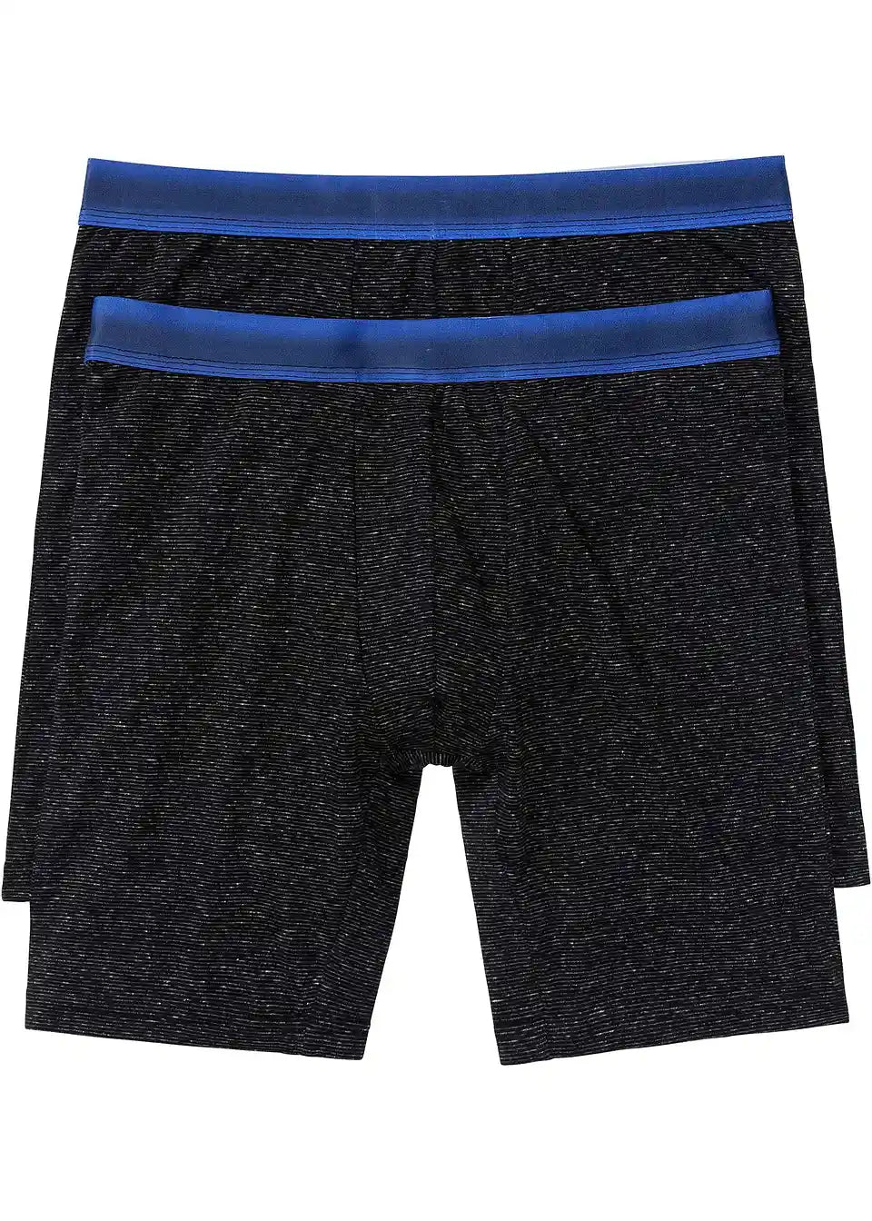 Ovaj udobni paket od 2 komada sadrži 2 duge bokserice od posebno ugodnog materijala s plavim, elastičnim pojasom.