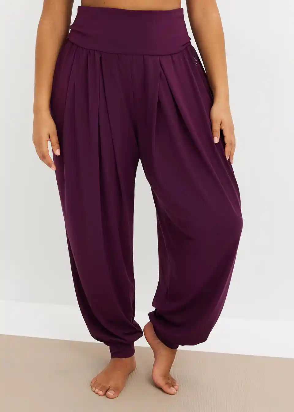 Yoga hlače s preklopnim pojasom i širokim krojem