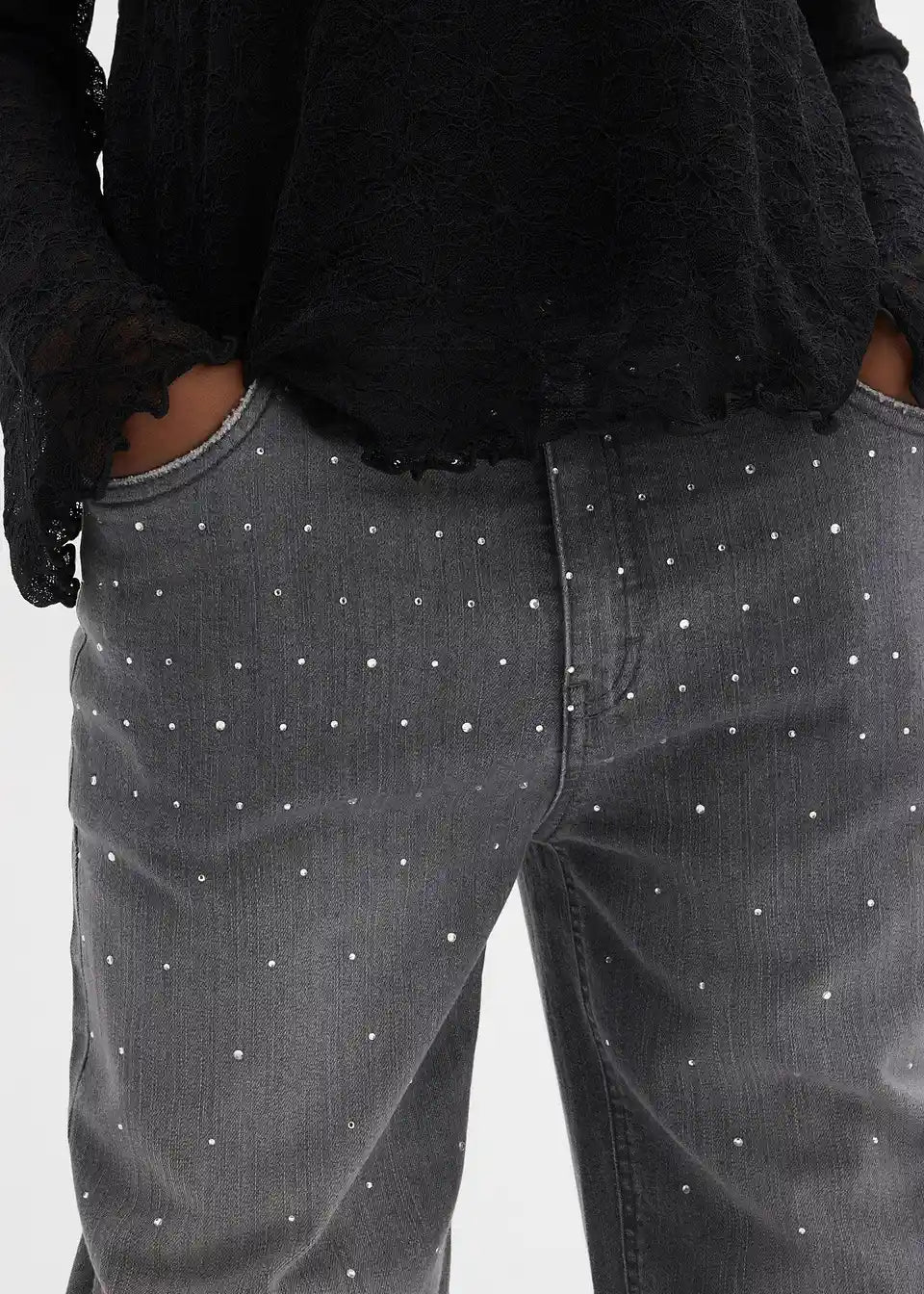 Traperice sa širokim nogavicama sa štras kamenčićima sa srednje visokim strukom