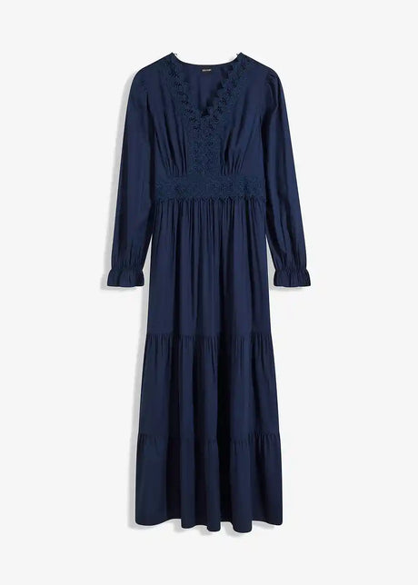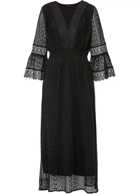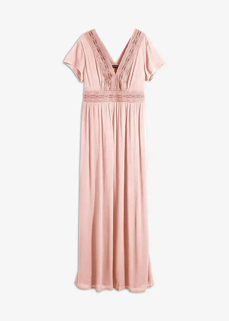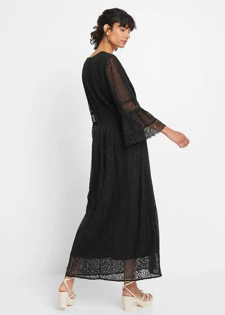 Maksi haljina od kompaktnog scuba materijala s čipkom