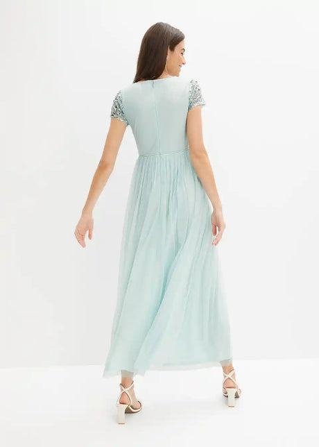 Prodajna cijena Od 62,99 € Standardna cijena 98,99 €Osnovna cijena /Nije dostupno Maksi haljina od finog tila s vezom sa šljokicama