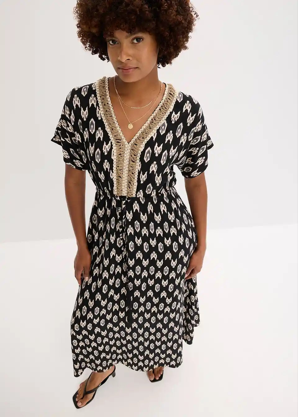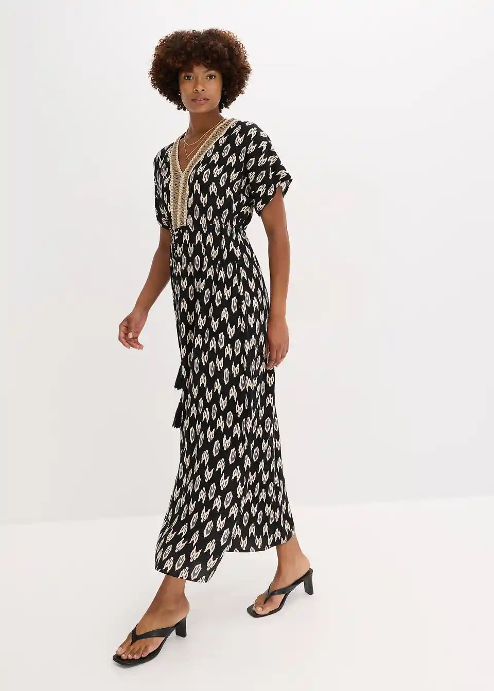tiskana maksi haljina od lepršave viskoze s dekorativnom aplikacijom sprijeda na dekolteu