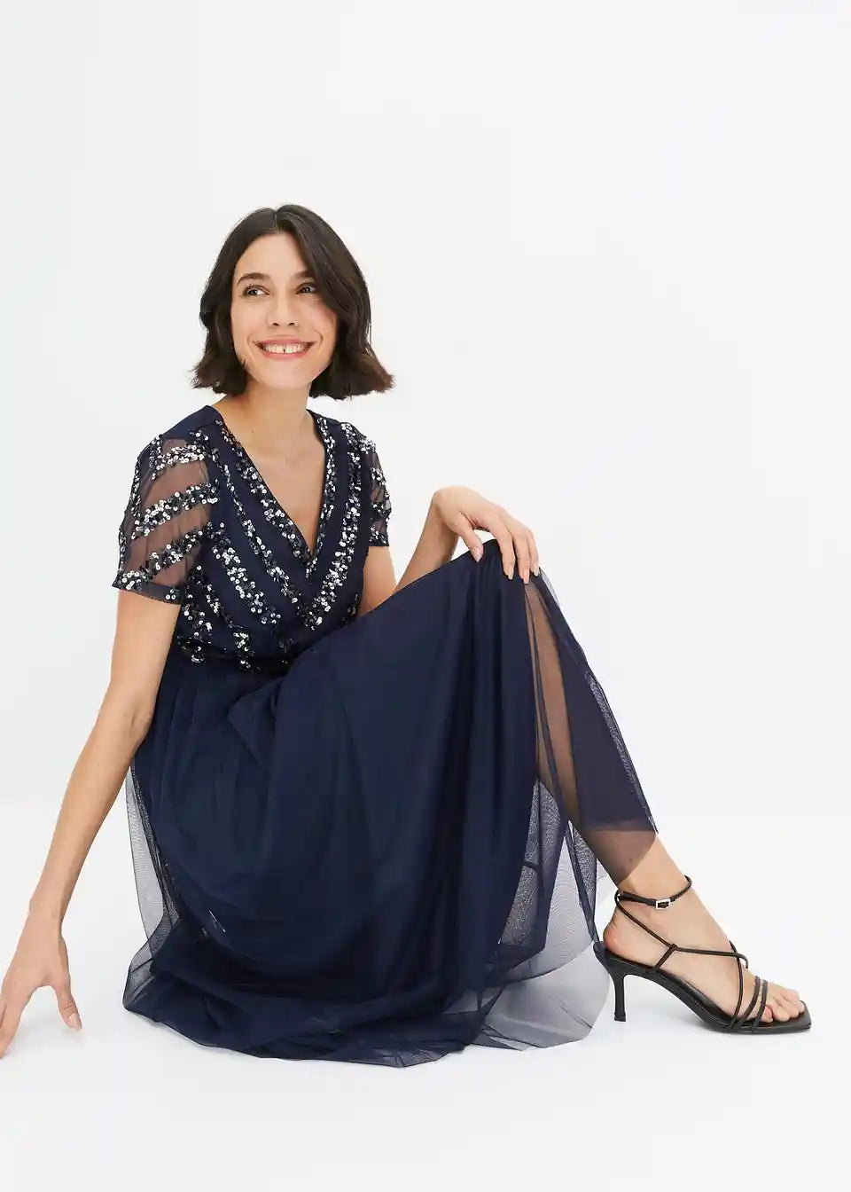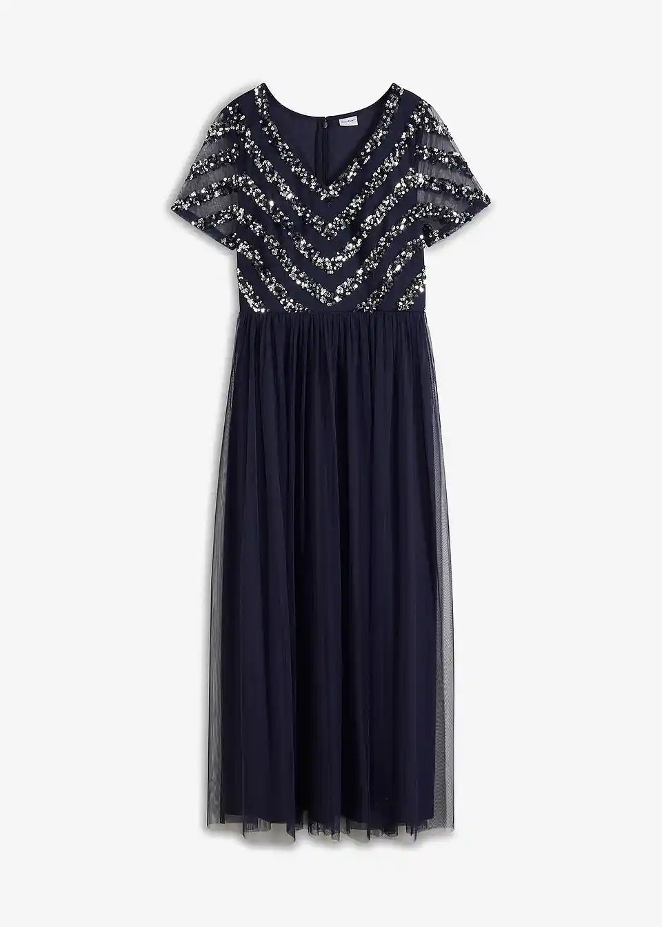 Moderna haljina iz BODYFLIRT kolekcije. Duga haljina ukrašena je šljokicama. Osim toga, haljina ima patentni zatvarač na stražnjoj strani. Duljina u veličini 36/38 cca 140 cm.