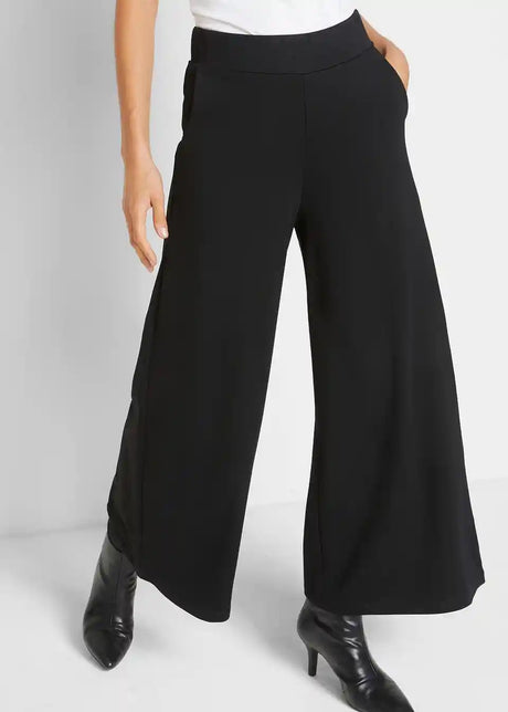 Široke culotte hlače od jerseya sa širokim gustim naborima u struku 7/8 dužine