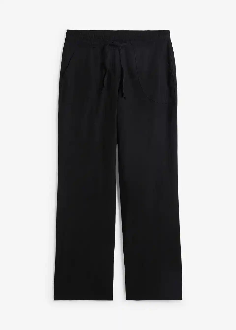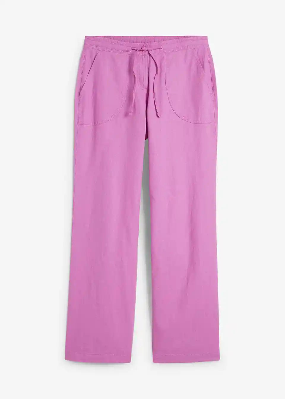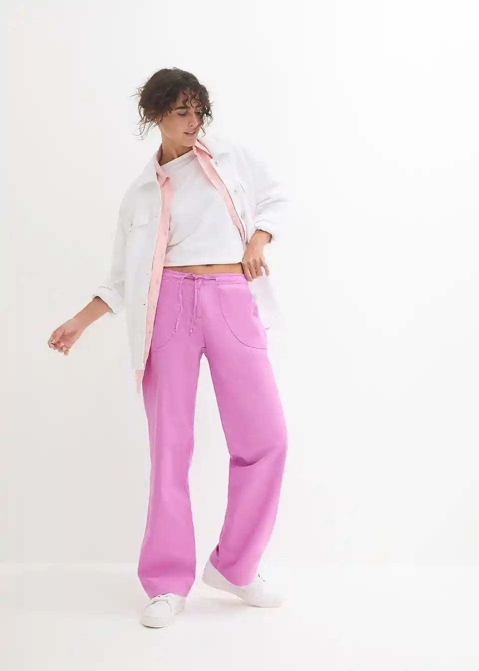 Ove lanene hlače širokog kroja marke bpc idealne su za toplije dane. Prozračni i lagani materijal čini model udobnim, a pojas se može individualno prilagoditi pomoću vezice. Duge lanene hlače su mekano oprane i dizajnirane s dva velika kosa džepa sprijeda te s dva našivena džepa straga.