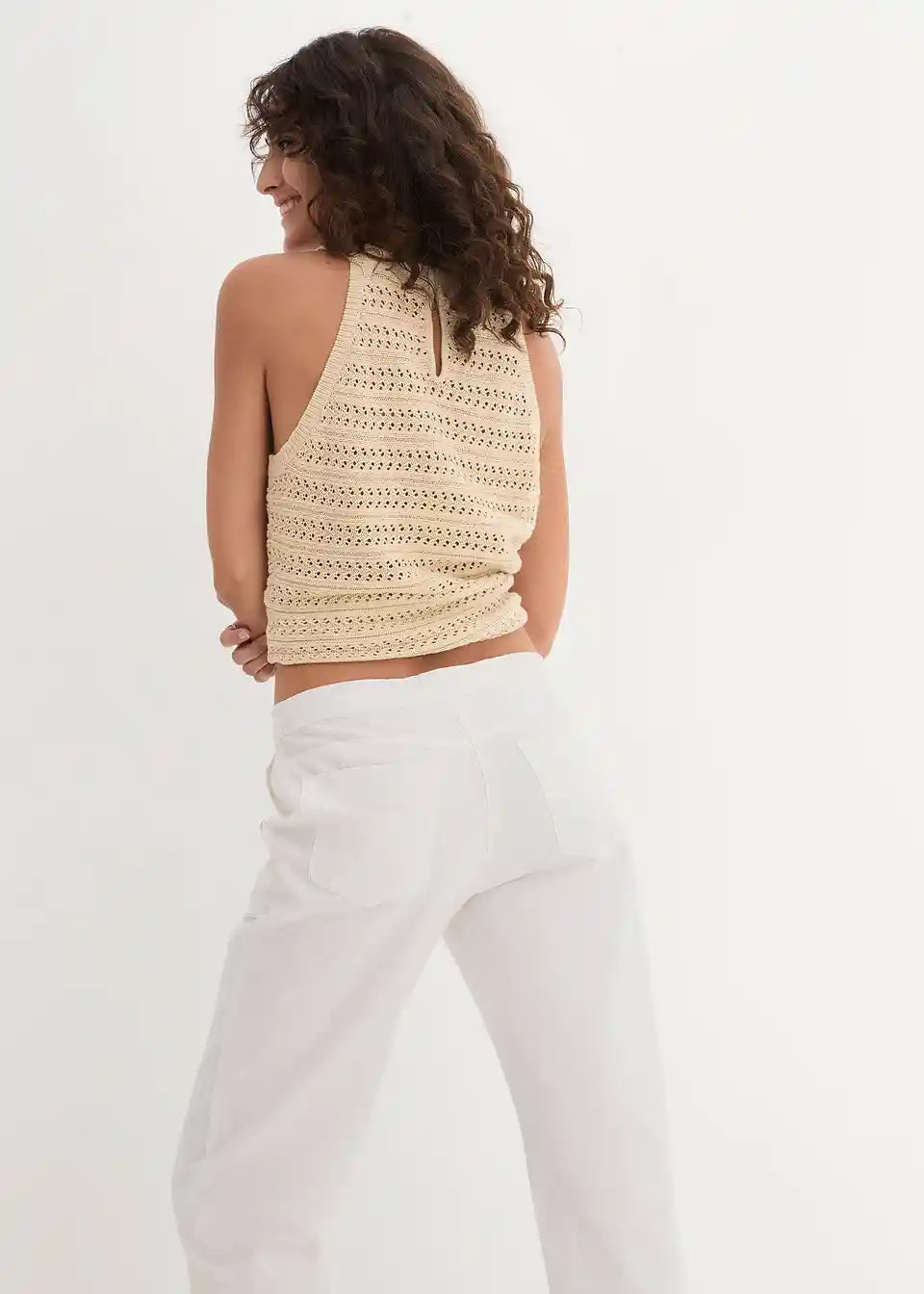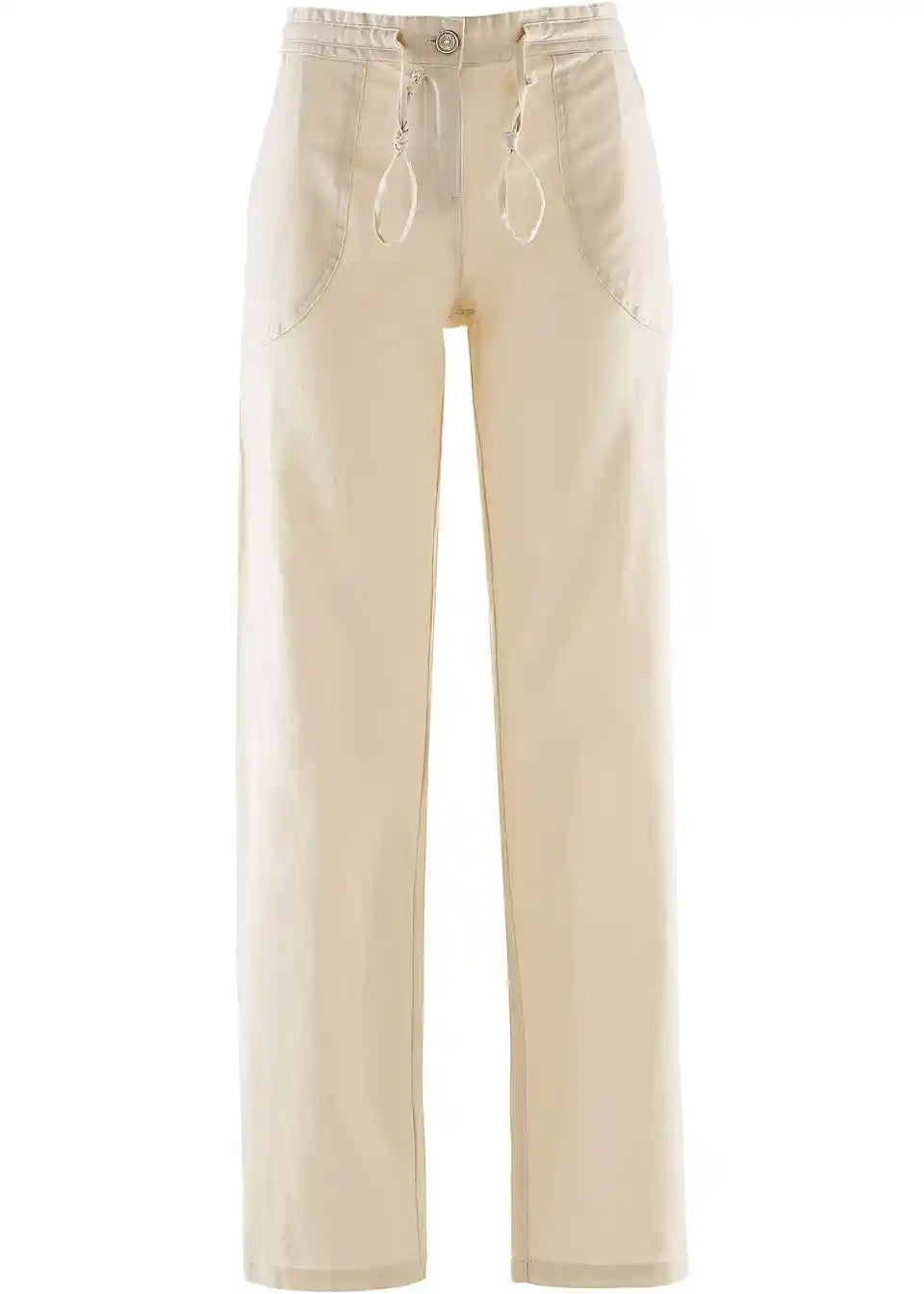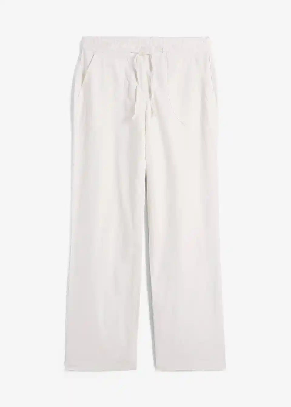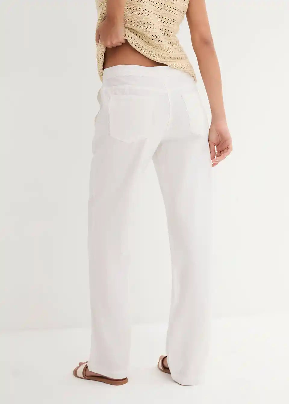 Ove lanene hlače širokog kroja marke bpc idealne su za toplije dane. Prozračni i lagani materijal čini model udobnim, a pojas se može individualno prilagoditi pomoću vezice. Duge lanene hlače su mekano oprane i dizajnirane s dva velika kosa džepa sprijeda te s dva našivena džepa straga.