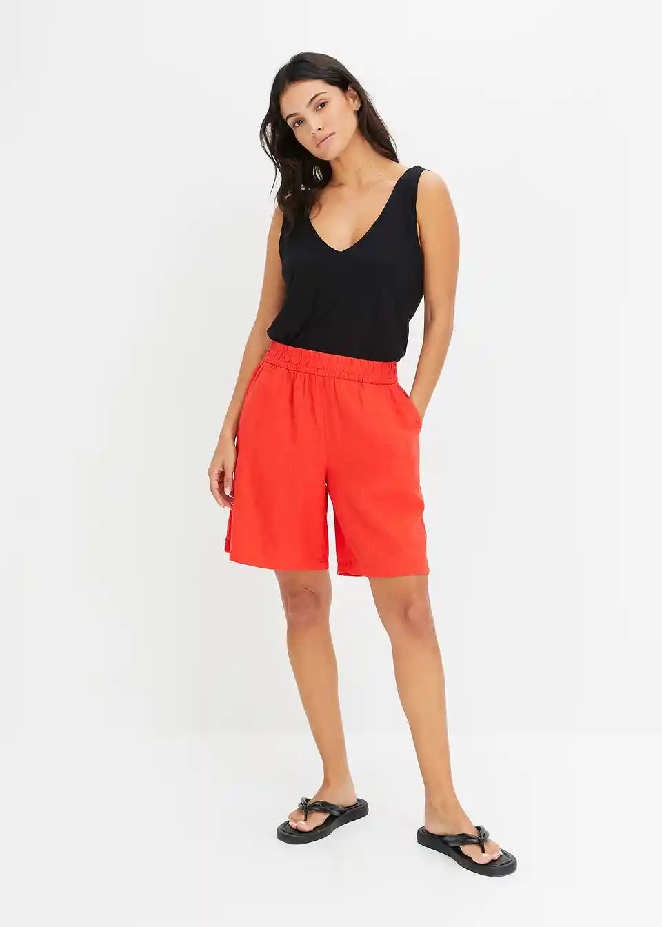 Šorts od lanenog/viskoznog mješavinskog materijala s normalnim, elastičnim pojasom