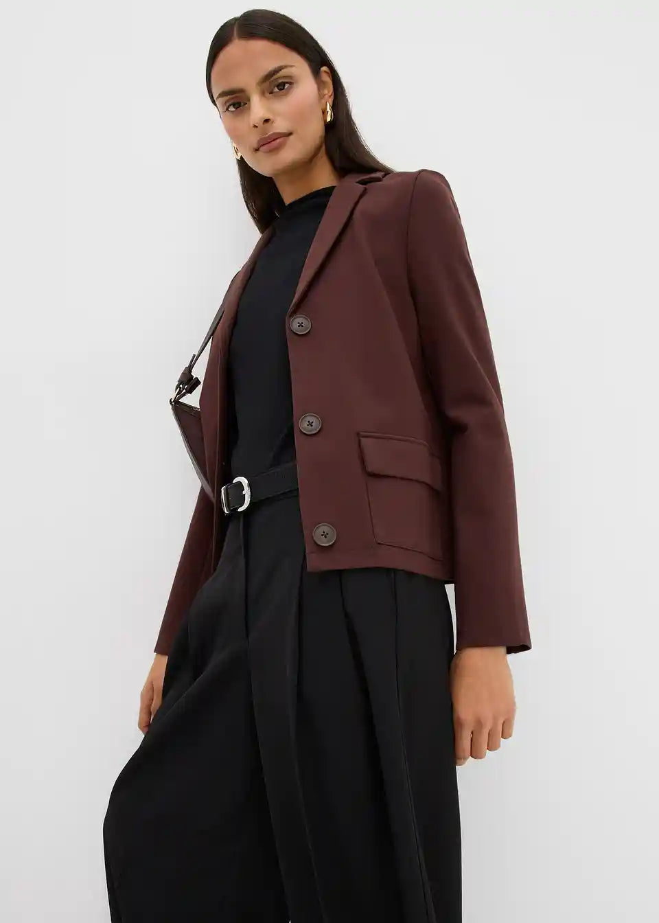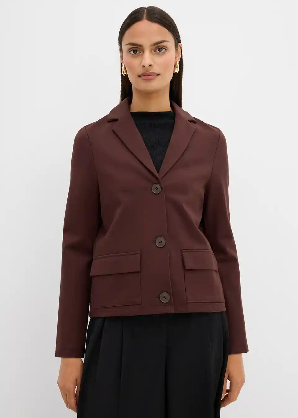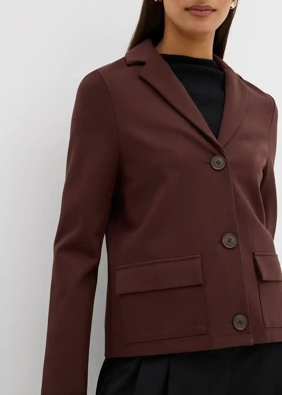 Blazer ravnog kroja s kopčanjem na gumb i dva prednja džepa s preklopom