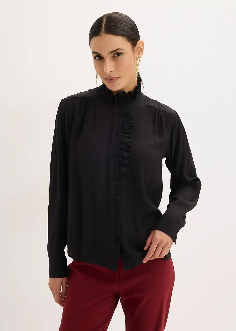elegantna bluza s čipkastim volanima