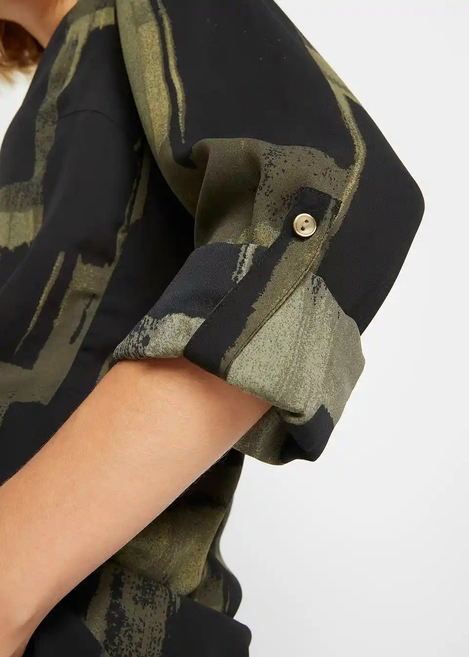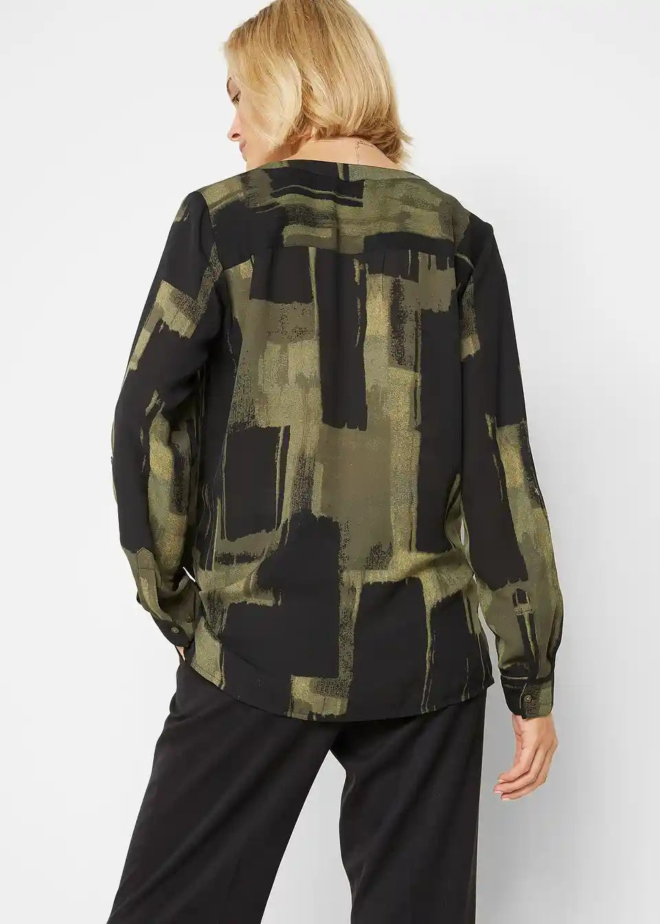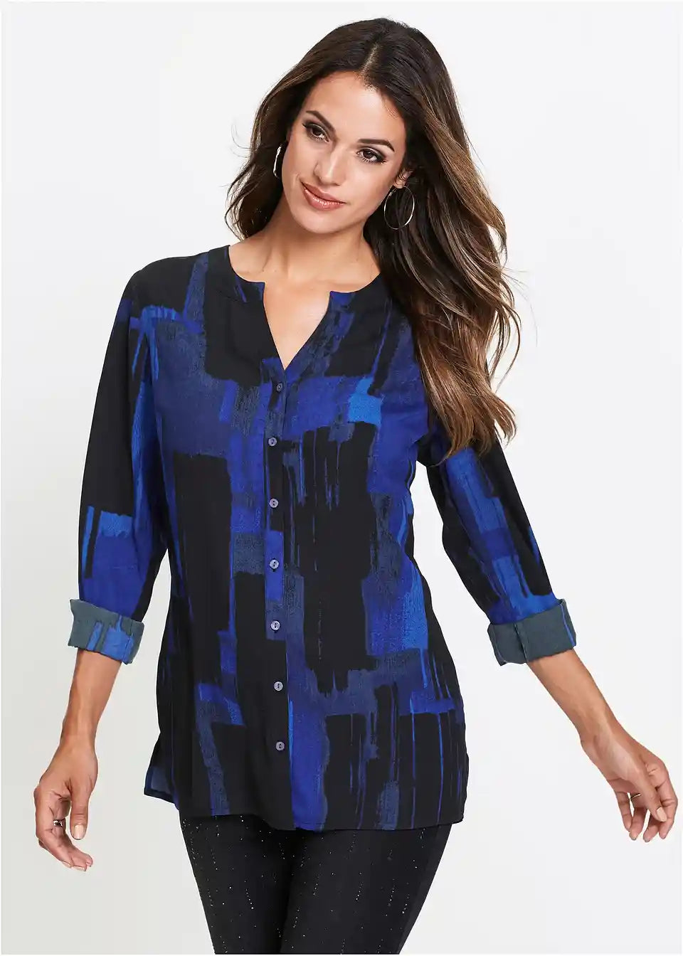 U modernom uzorku, s malim stojećim ovratnikom i kopčanjem na gumbiće sprijeda, dugi rukavi s mogućnošću zavrtanja, mali bočni prorezi, duljina od cca. 69 cm (vel. 36) do cca. 78 cm (vel. 54), perivo u perilici rublja,