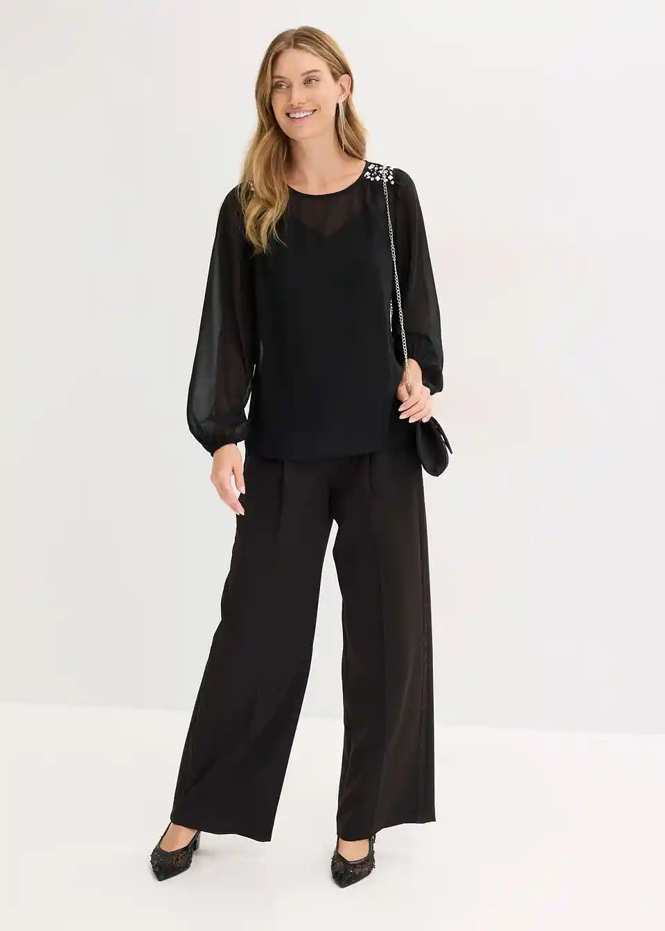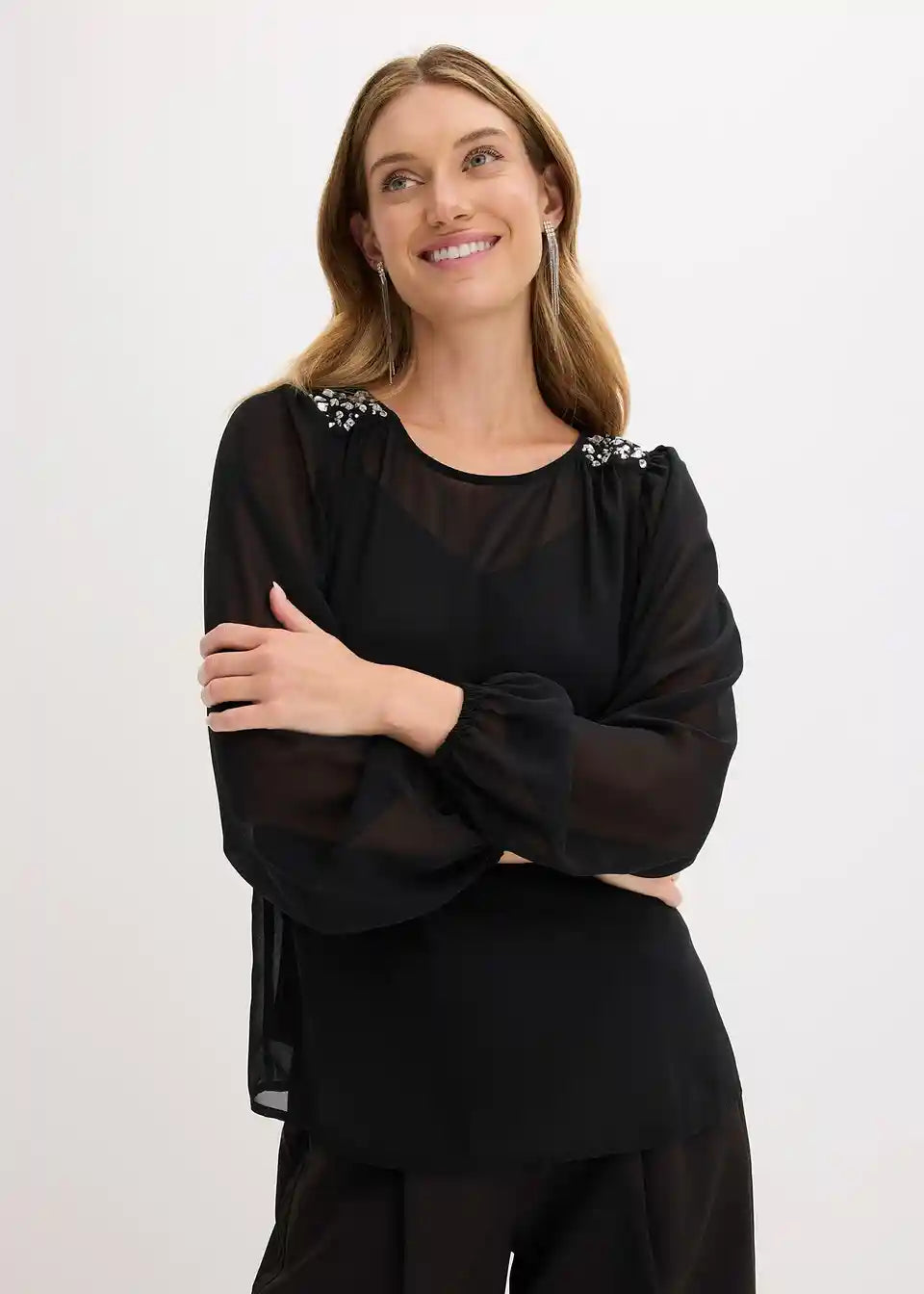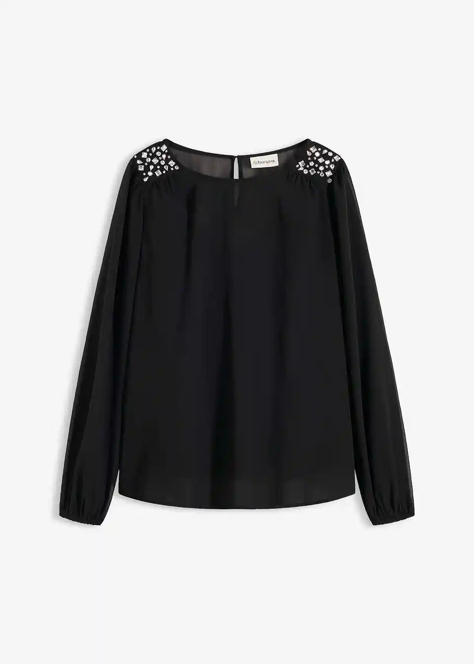 Moderna i ženstvena: bluza od finog šifona s ukrasom od kamenčića na ramenima