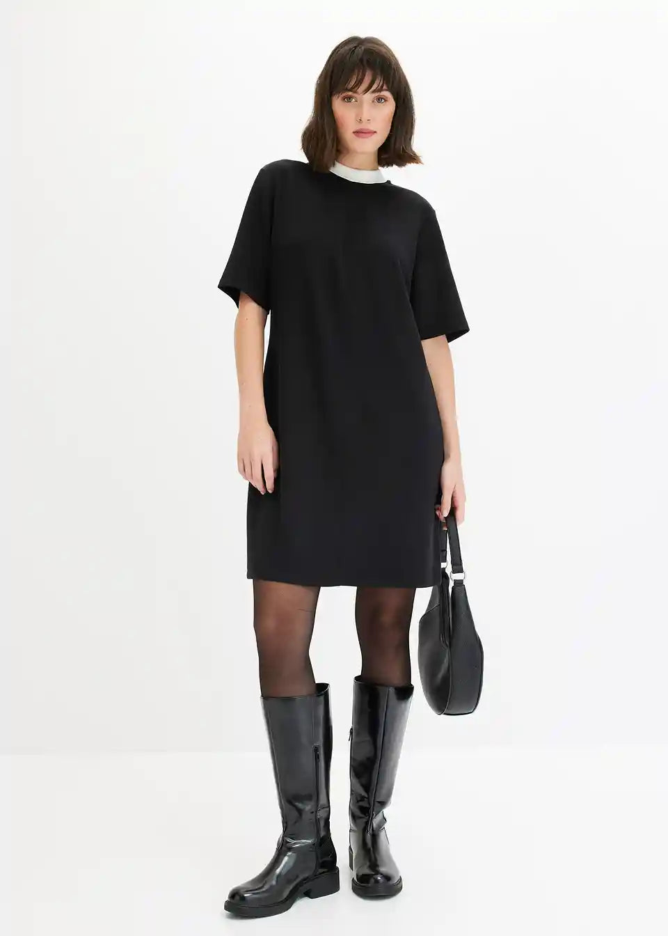 Mini haljina s dolčevita ovratnikom kontrastne boje od scuba materijala s udjelom viskoze