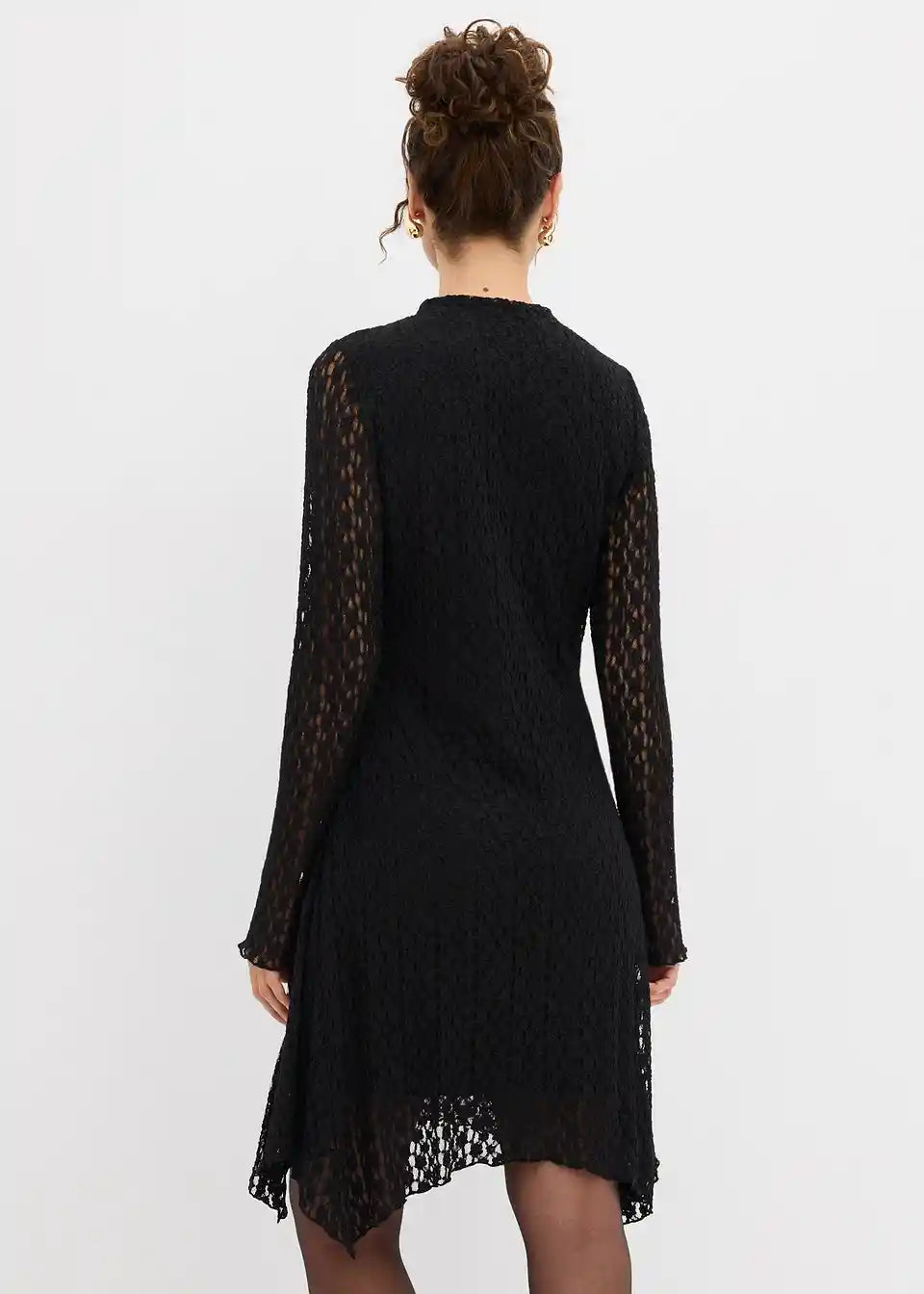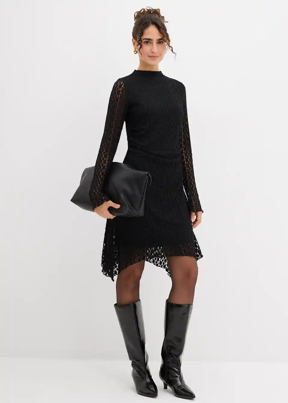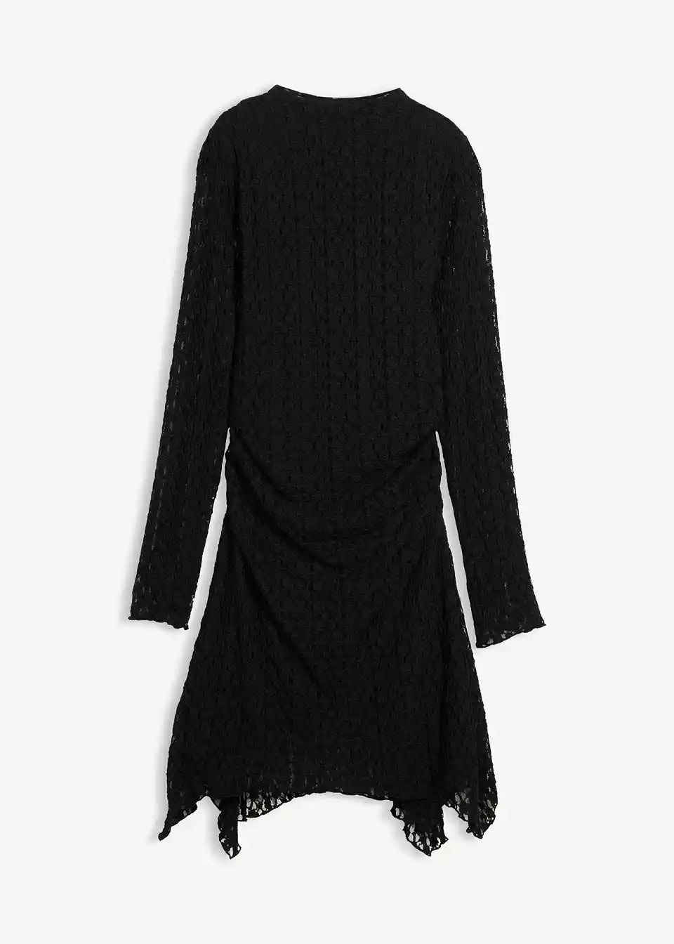 Figurbetontes Spitzenkleid mit Zipfelsaum und seitlicher Raffung