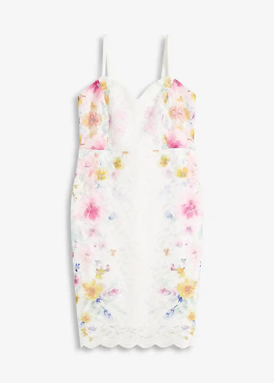 Modern i ženstven: čipkasta haljina mini dužine s podesivim naramenicama i cvjetnim uzorkom na čipki