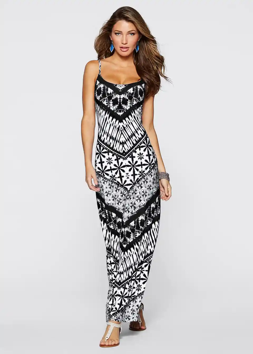 Šarmantna maxi haljina na naramenice s prekrasnim printom po cijeloj površini