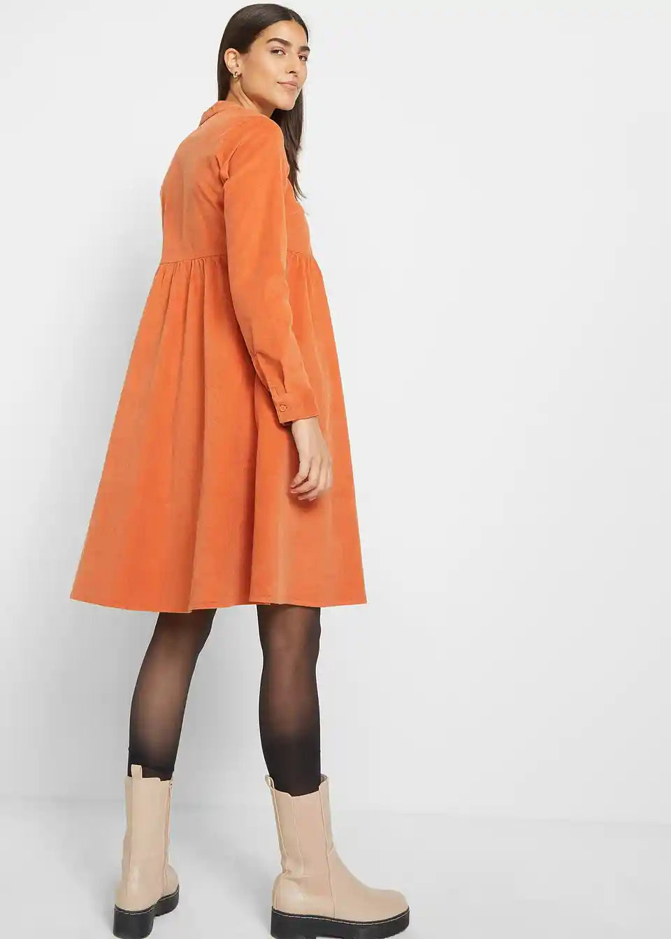 Ležerna haljina od pamučnog kordbaršuna s V-izrezom