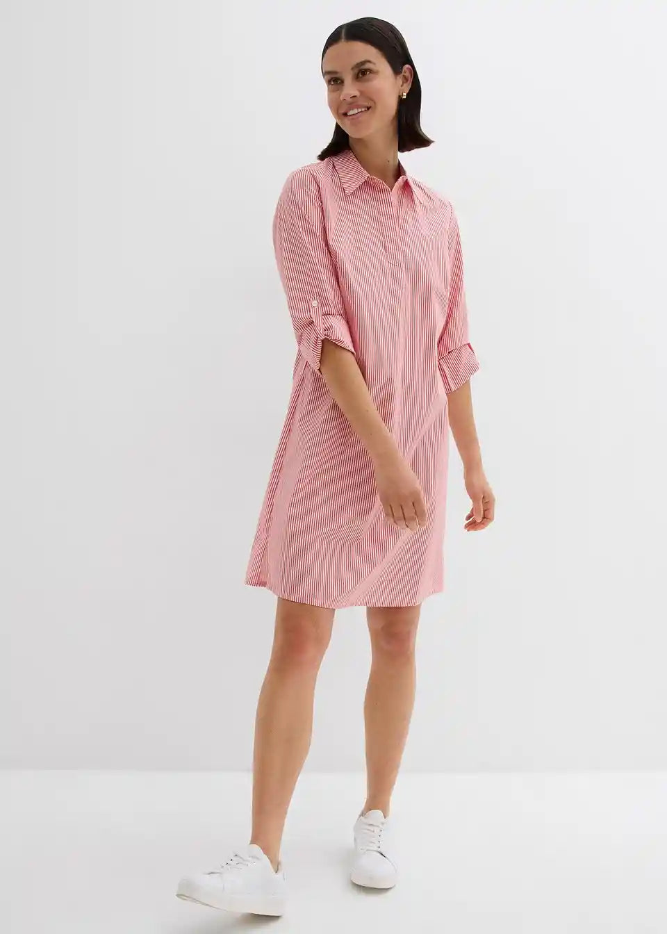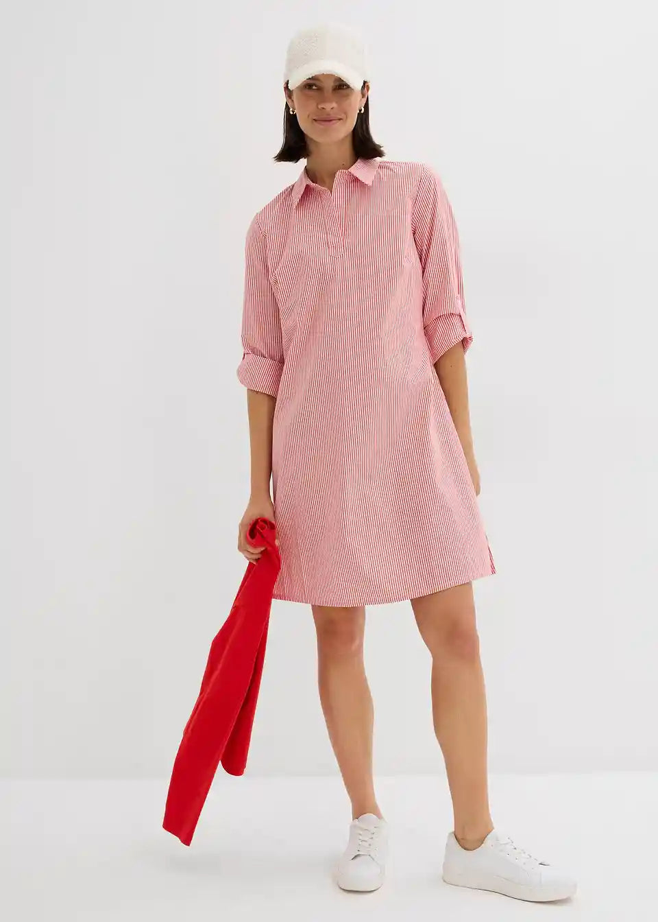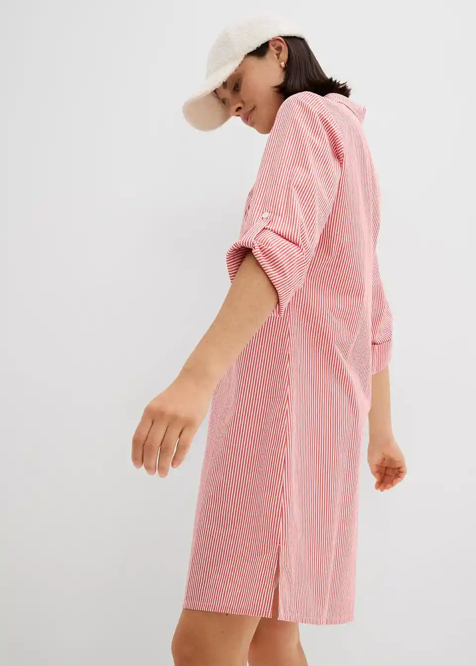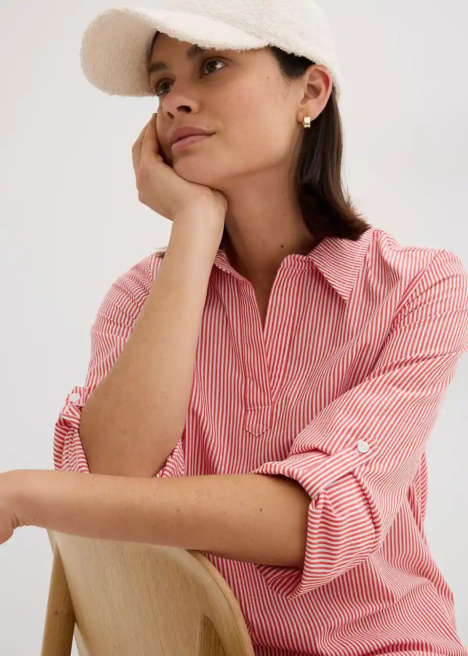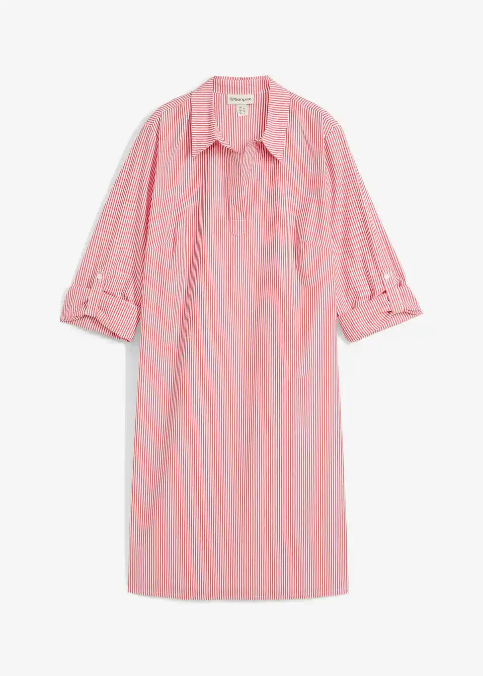 Ekstra dugačka duga bluza s bočnim prorezima, dugi rukavi s mogućnošću podvrnutog nošenja, duljina cca 96 cm (vel. 42), perivo u perilici rublja.