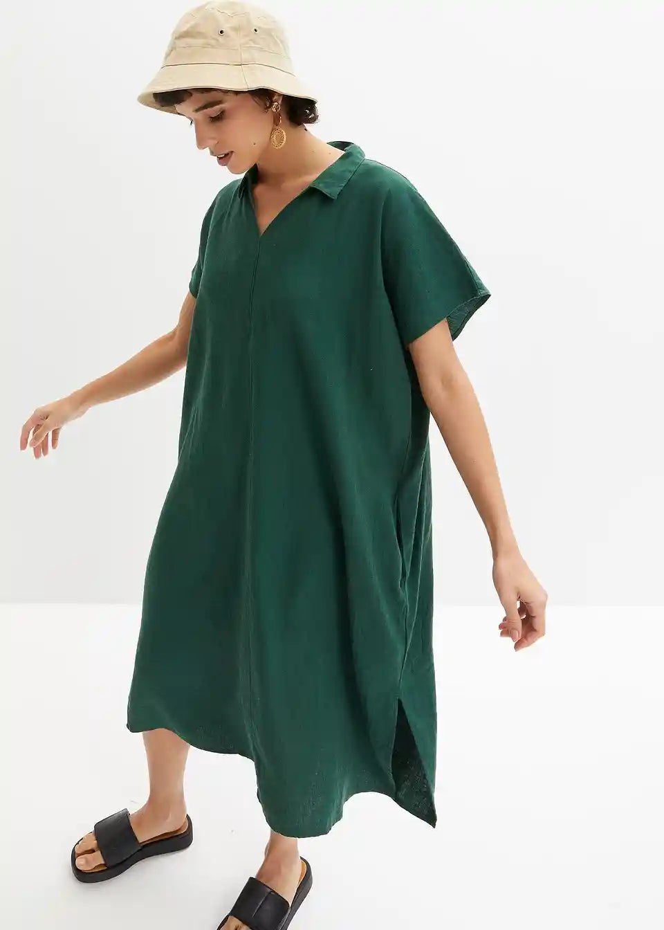 široka ljetna haljina s lanom u modernom obliku kaftana