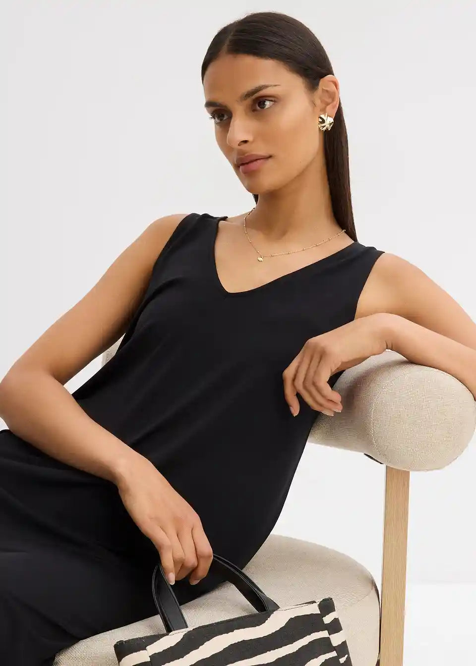Mini haljina bez rukava s prednjim i stražnjim V-izrezom u A-kroju