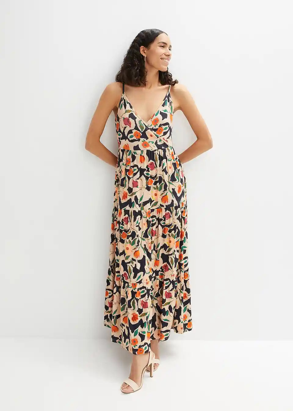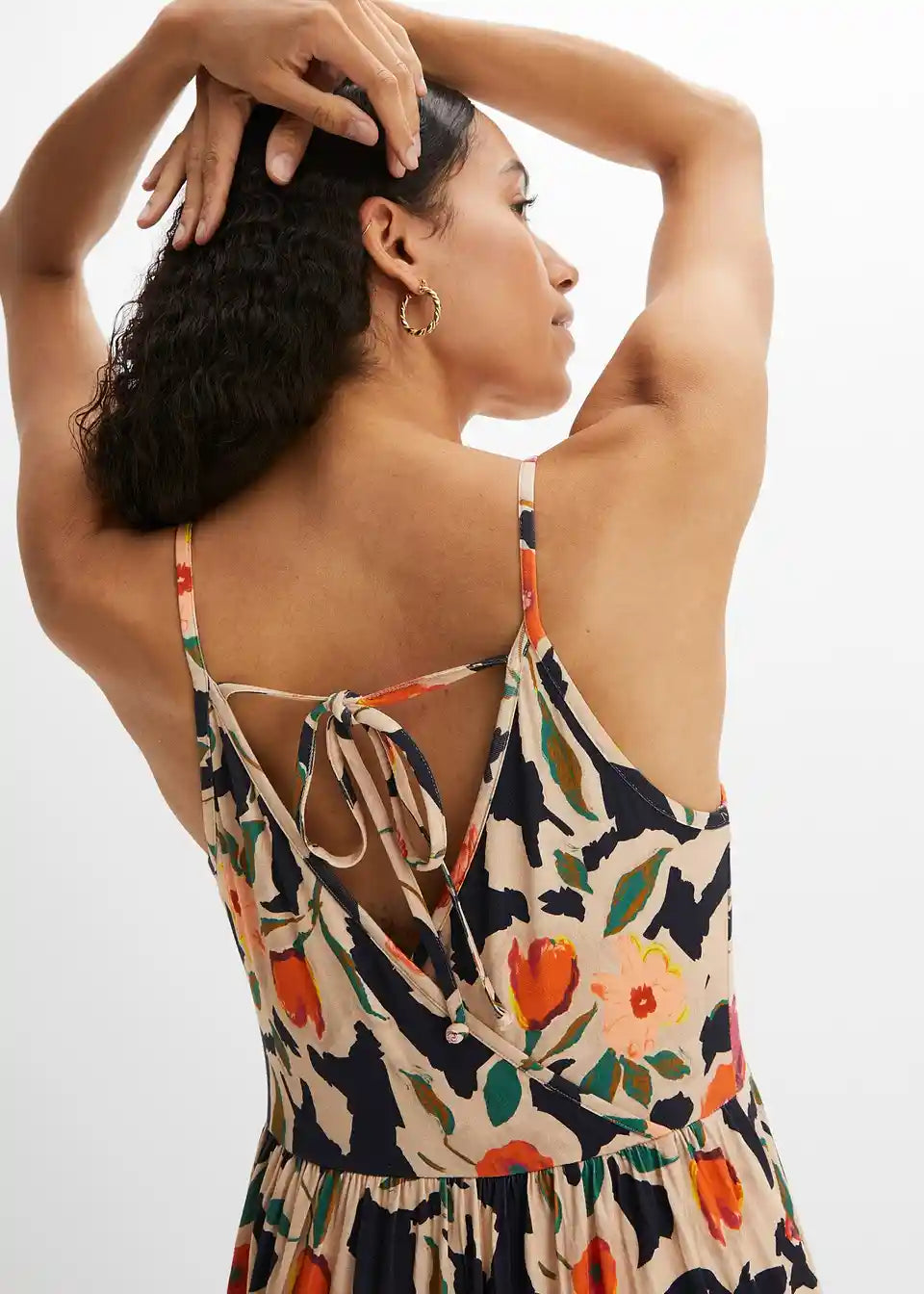 ljetna maksi haljina s prekrasnim printom i dubokim V-izrezom sprijeda i straga.