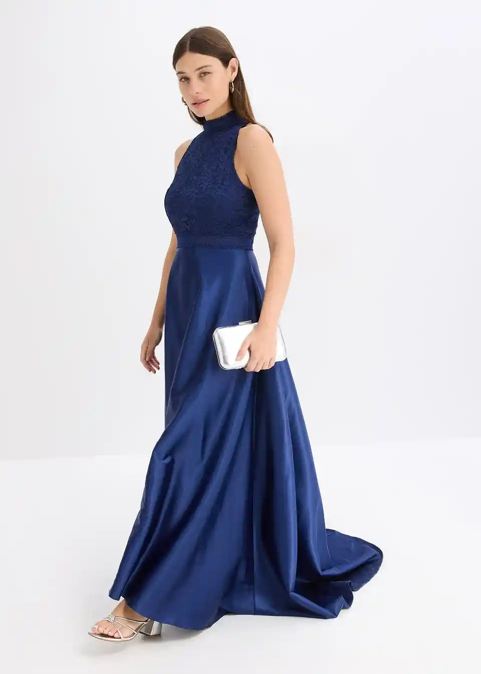 Maksi haljina od satena sa sjajem i čipkom