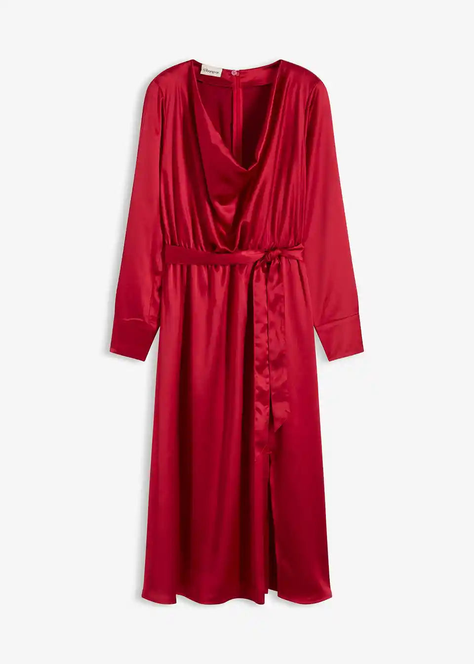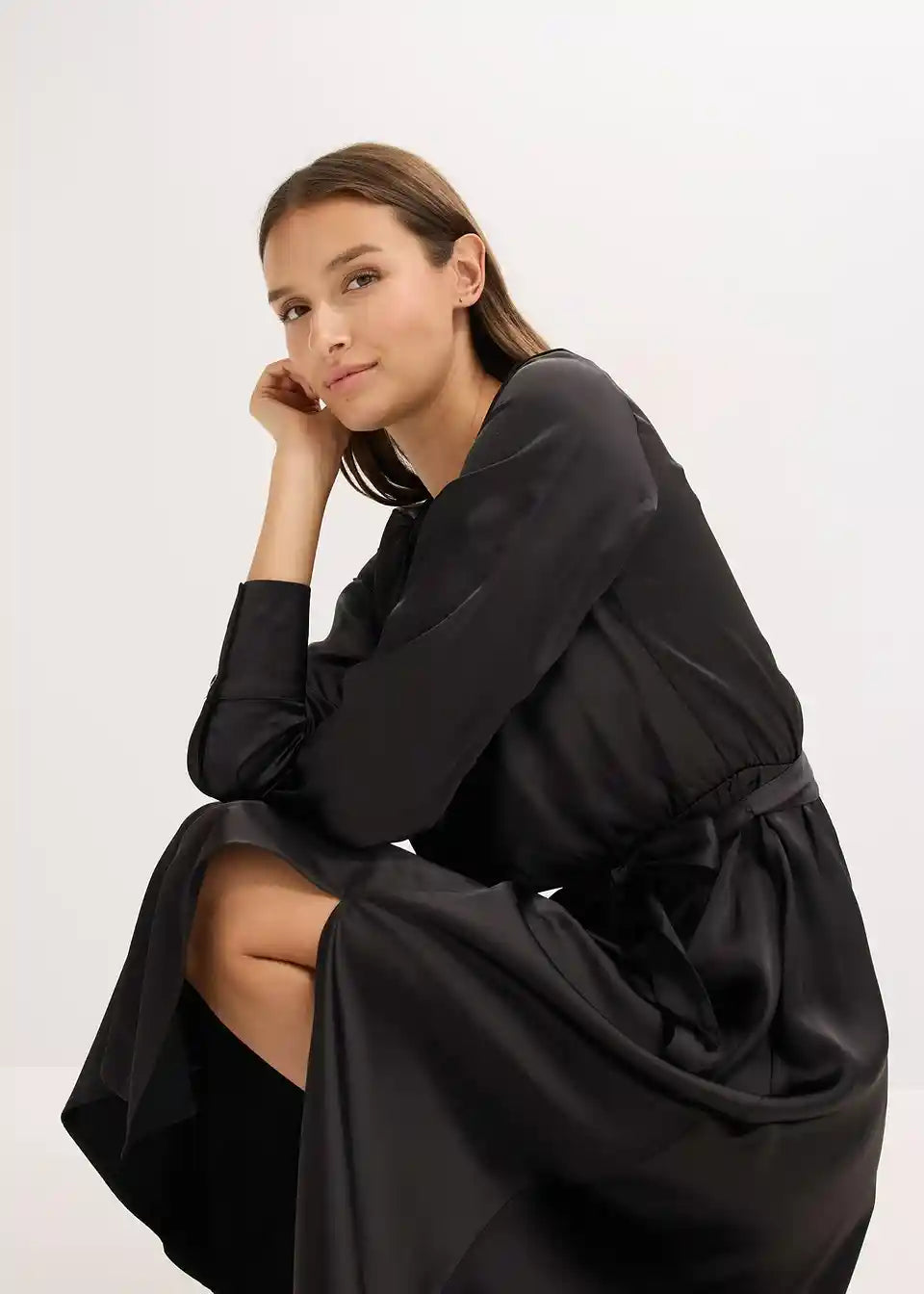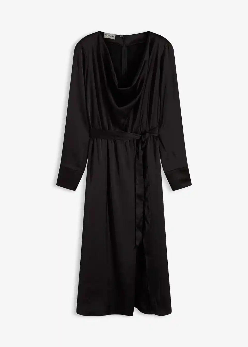 Lagano lepršava, blago raširena satenska haljina s pojasom za vezanje